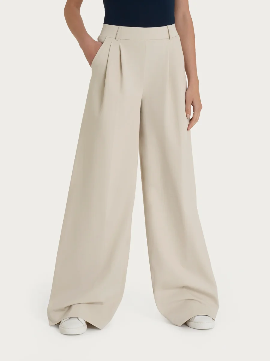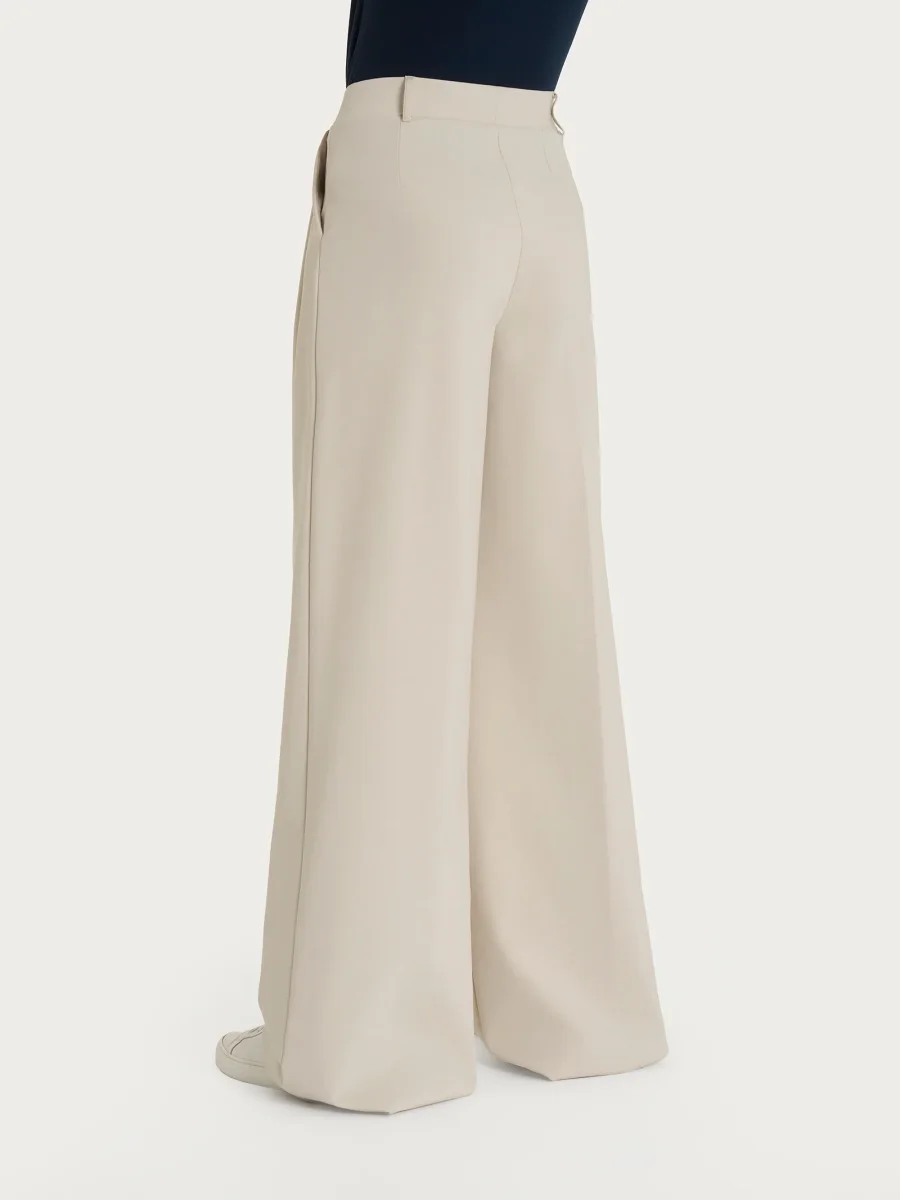 Pantalone lungo a palazzo con tasche e pinces in Compact Light – Champignon