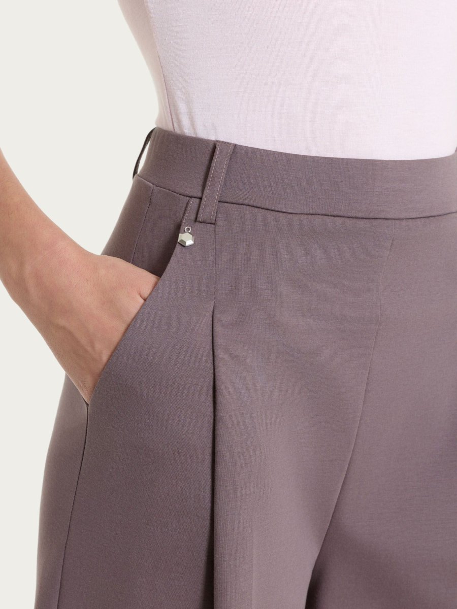 Le tasche laterali alla francese aggiungono praticità senza compromettere lo stile, mentre le doppie pinces sul davanti donano una struttura raffinata e una migliore vestibilità. I passanti per la cintura completano il design, permettendo di personalizzare il look.