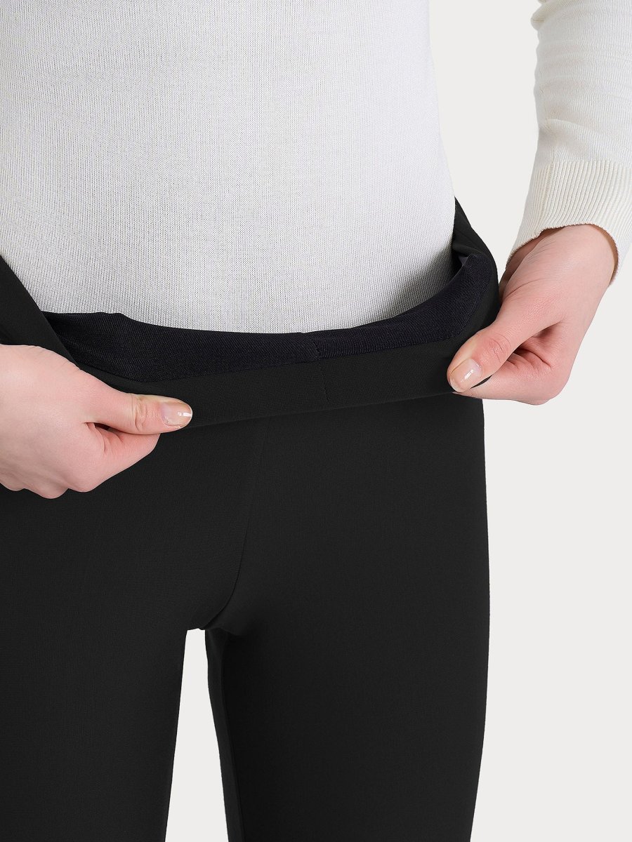 Questo modello è costruito con vita elasticizzata, senza zip e senza tasche. Comodo come indossare un leggings pur mantenendo l’eleganza di un pantalone.