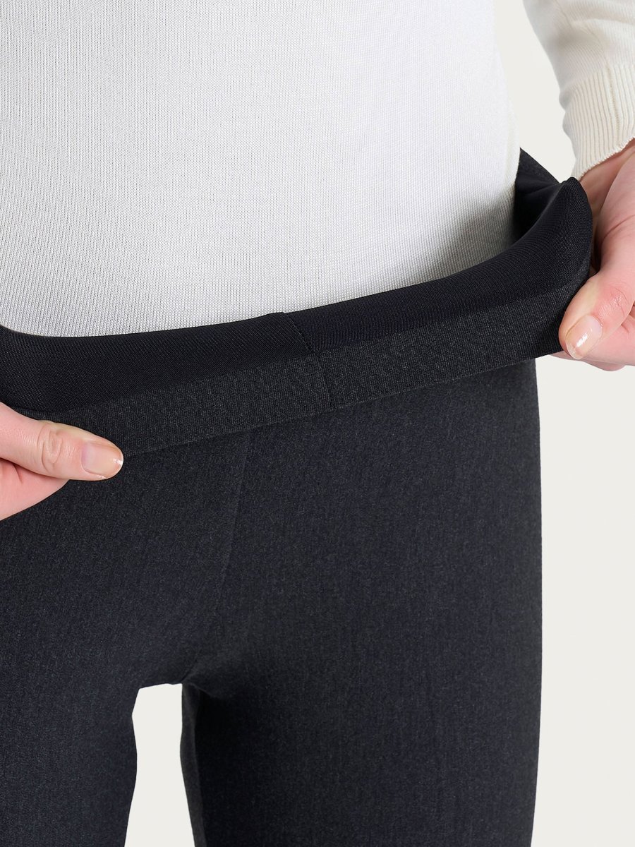 Questo modello è costruito con vita elasticizzata, senza zip e senza tasche. Comodo come indossare un leggings pur mantenendo l’eleganza di un pantalone.