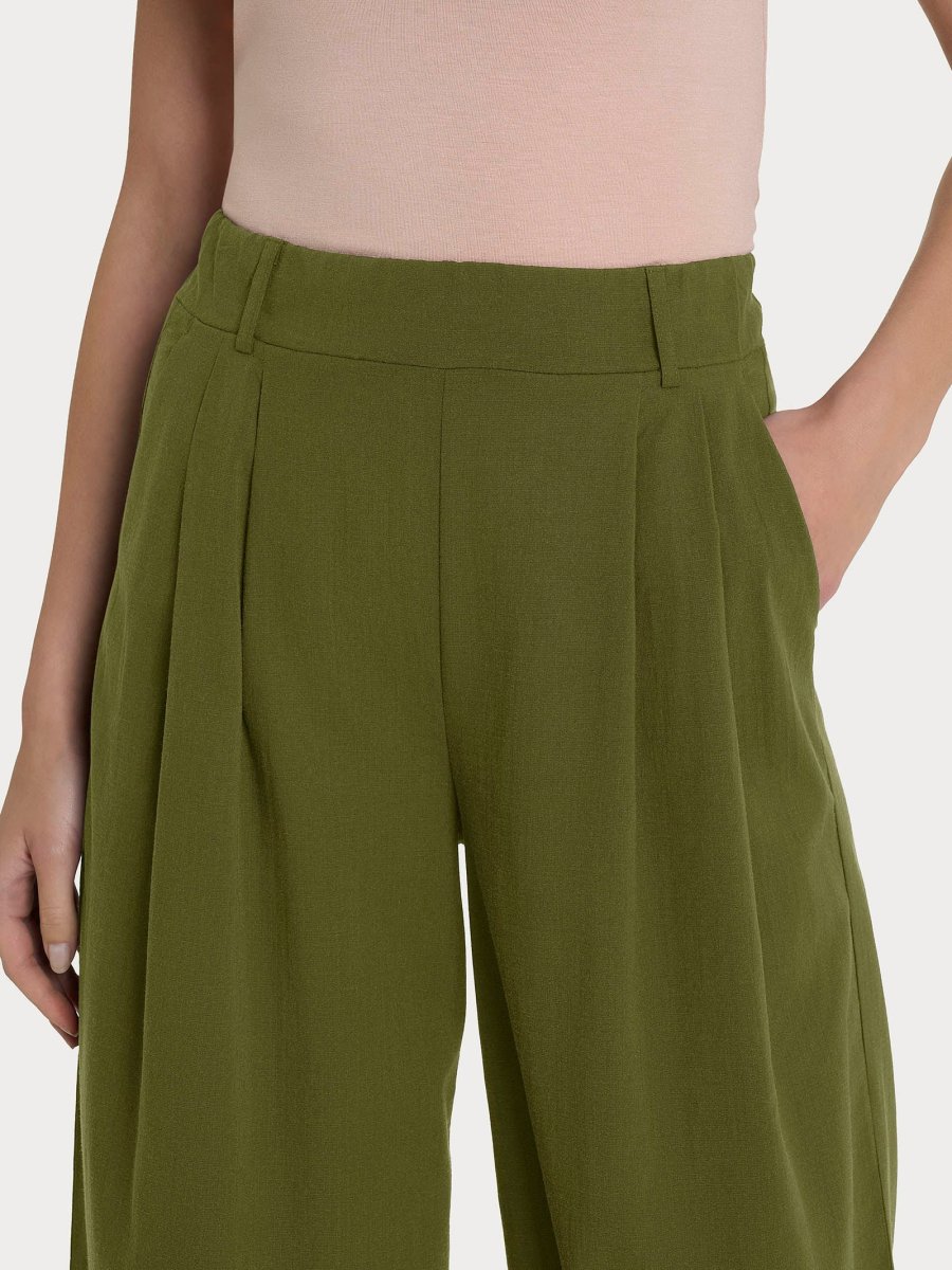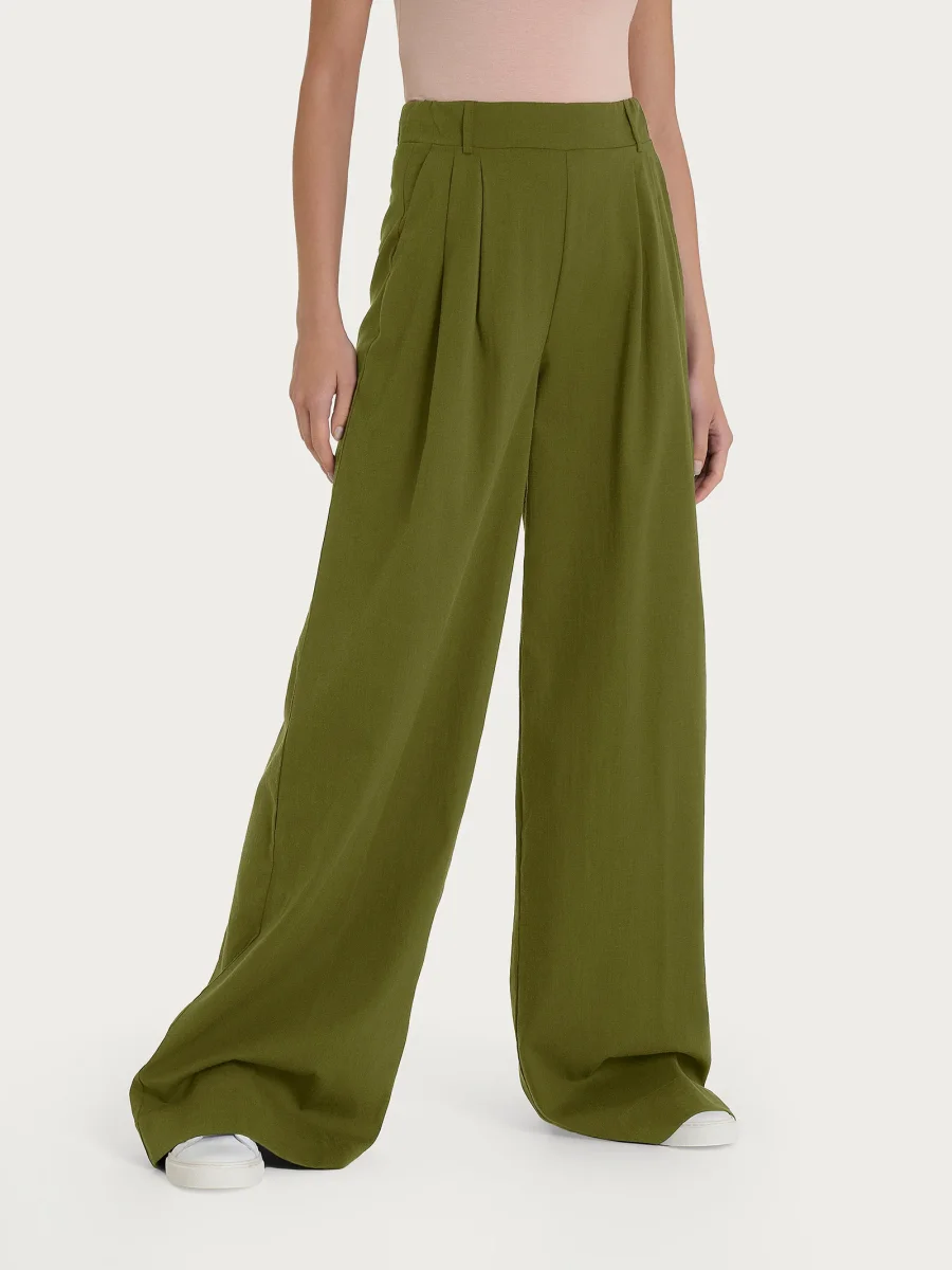Pantalone palazzo con tasche e pinces in Super Natural – Sphagnum
