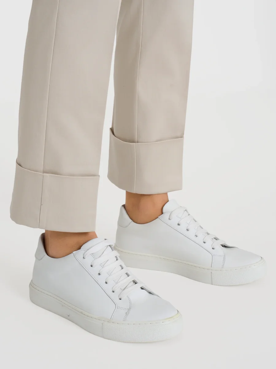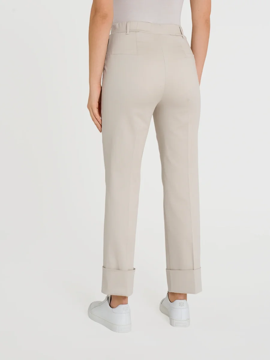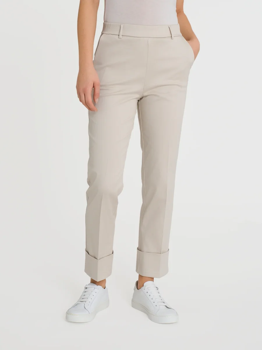 Pantalone lungo da donna a gamba dritta con risvolto non fissato.