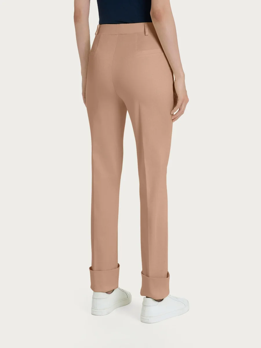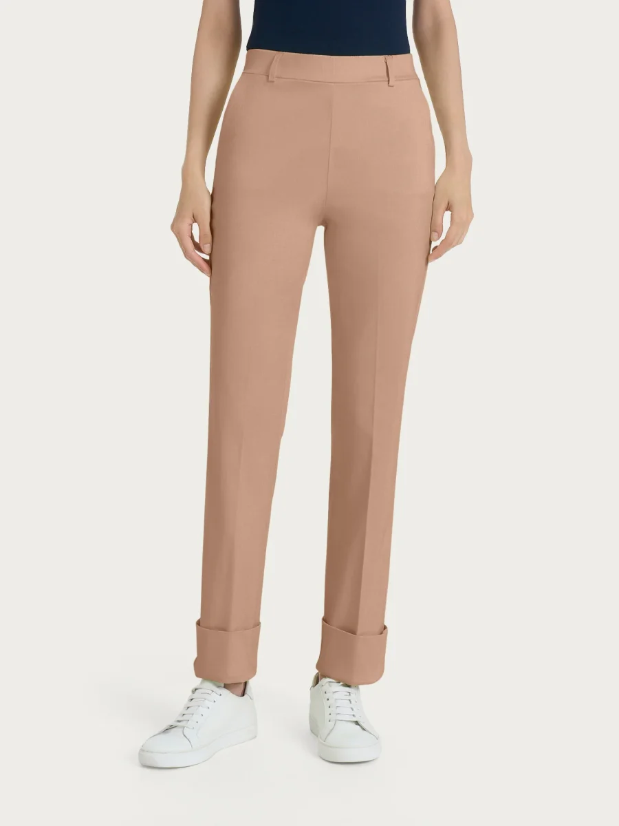 Pantalone lungo da donna a gamba dritta con risvolto non fissato.