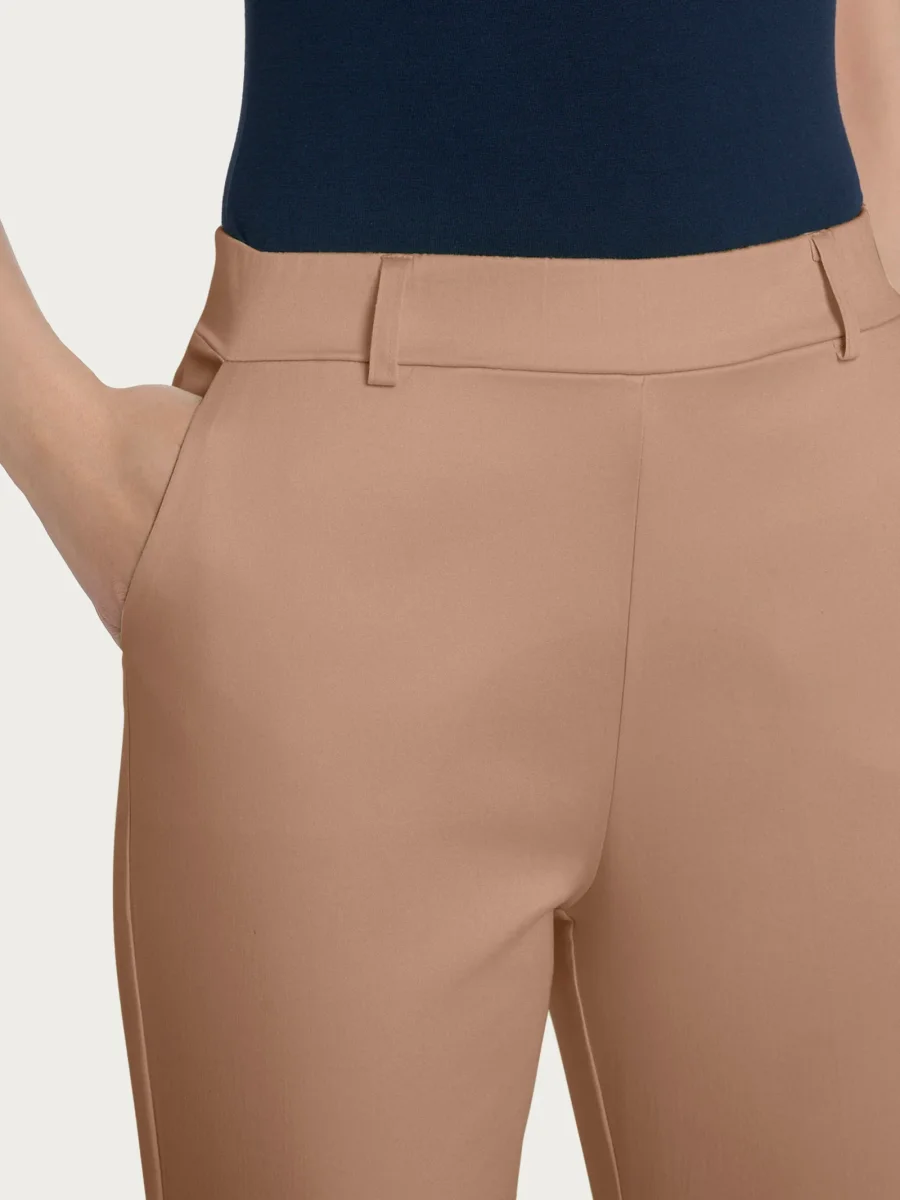 Pantalone slim dritto in Satin Power – Warm Taupe