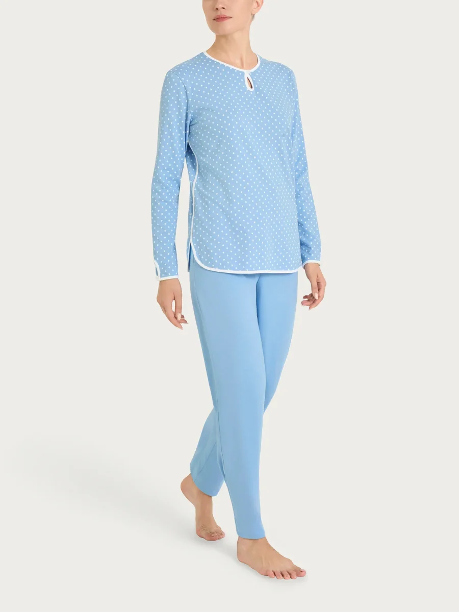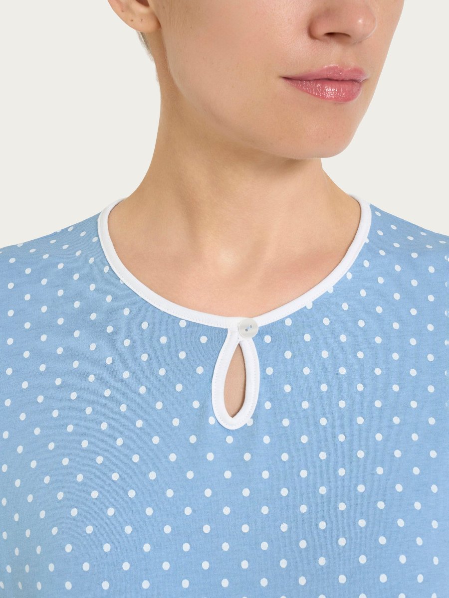 Pigiama a pois con scollo a goccia in Jersey di cotone – Fant. Della Robbia Blue