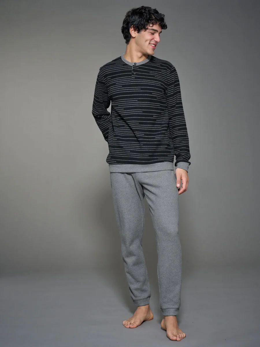 Il pigiama serafino invernale da uomo è la scelta perfetta per affrontare le fredde notti invernali con calore e morbidezza. Il tessuto offre un comfort avvolgente e un calore extra.