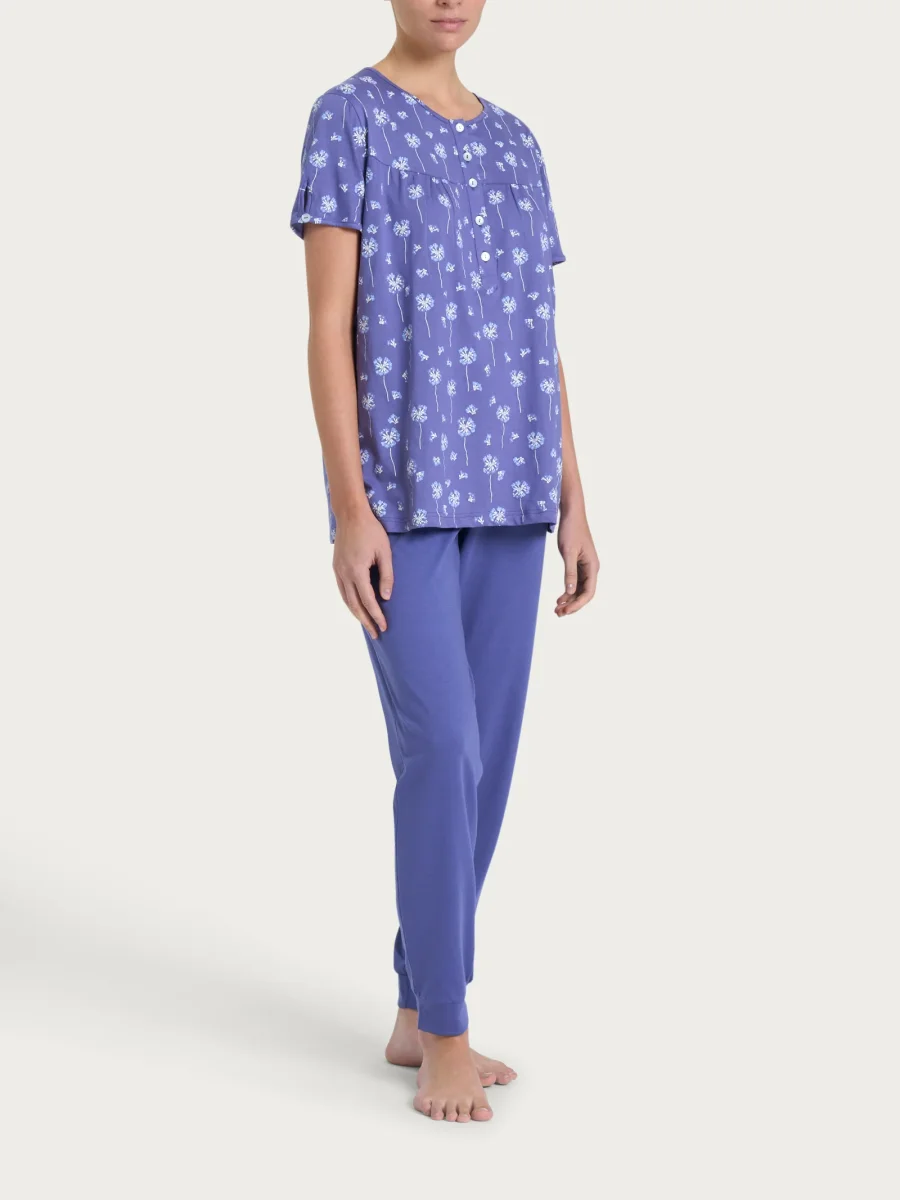 Disponibile in una versione scura e una chiara, questo pigiama unisce stile e comodità, accompagnandoti nelle mezze stagioni con un tocco distintivo e delicato, perfetto per il relax senza rinunciare all’eleganza.