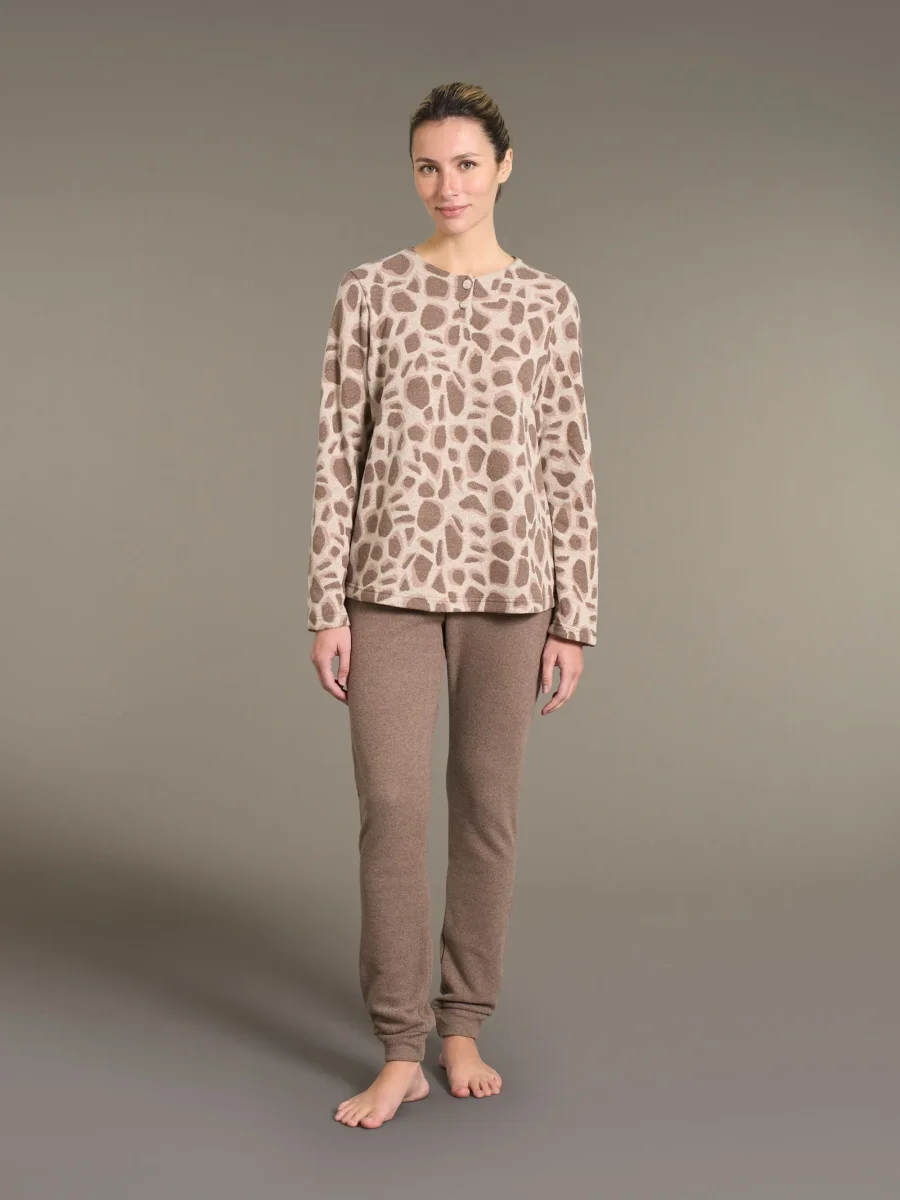 Pigiama a serafino con fantasia animalier in cotton eco pile – Fant.Caffe’
