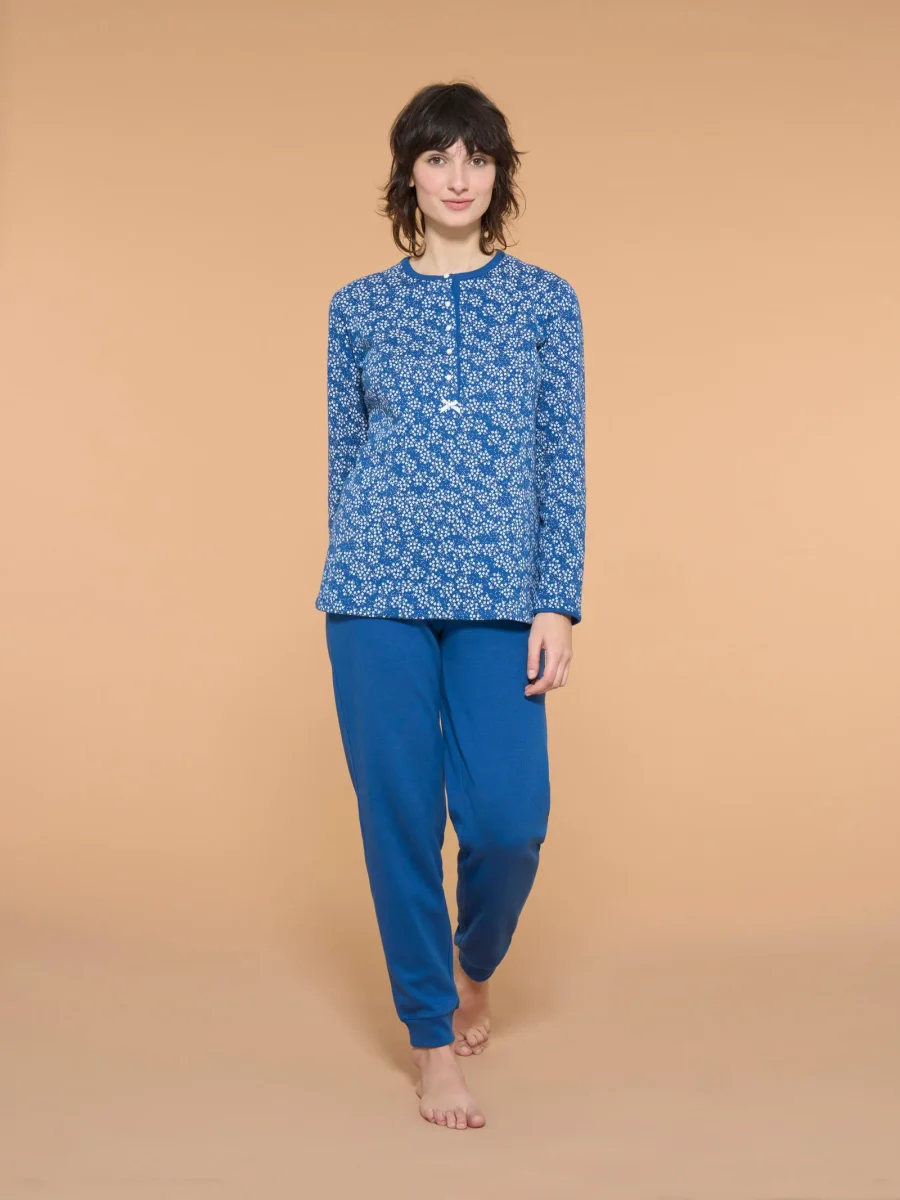 Pigiama a serafino con fiori in interlock di caldo cotone – Fant. Set Sail