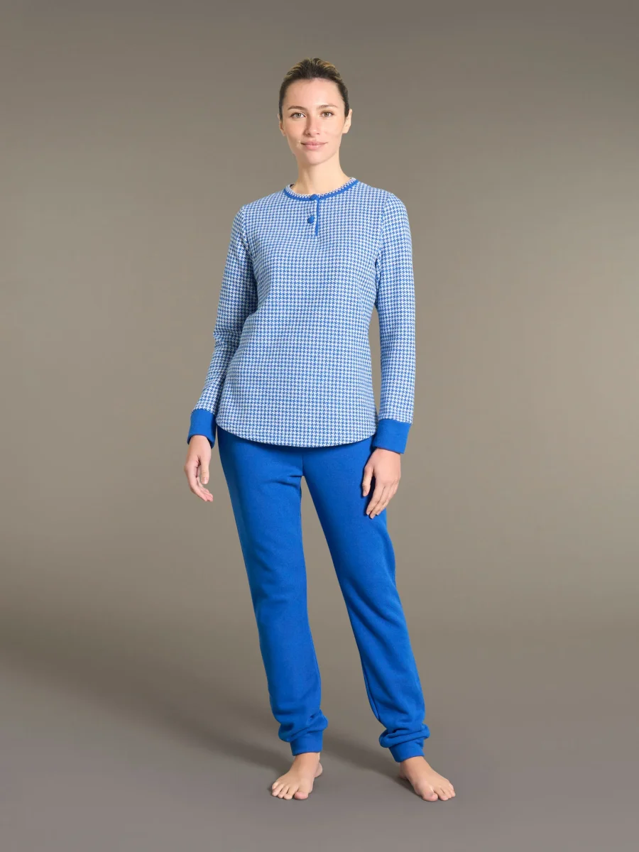 Pigiama a serafino con pied de poule in Cotton Eco Pile – Fant.Bluette