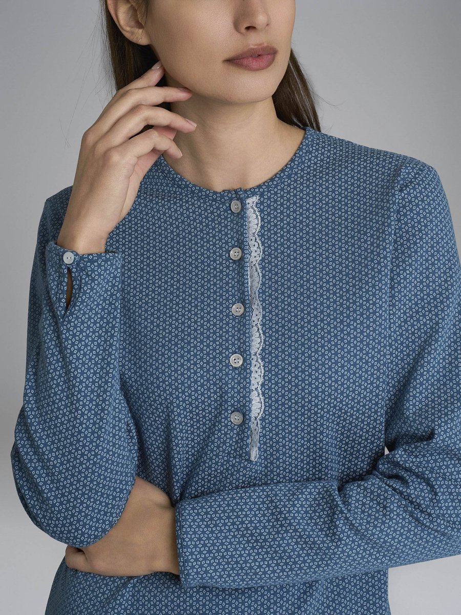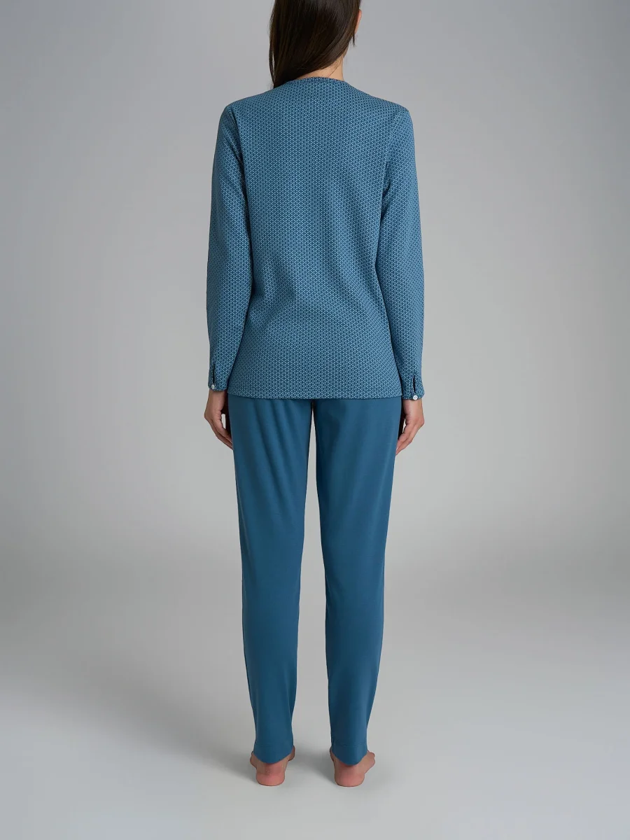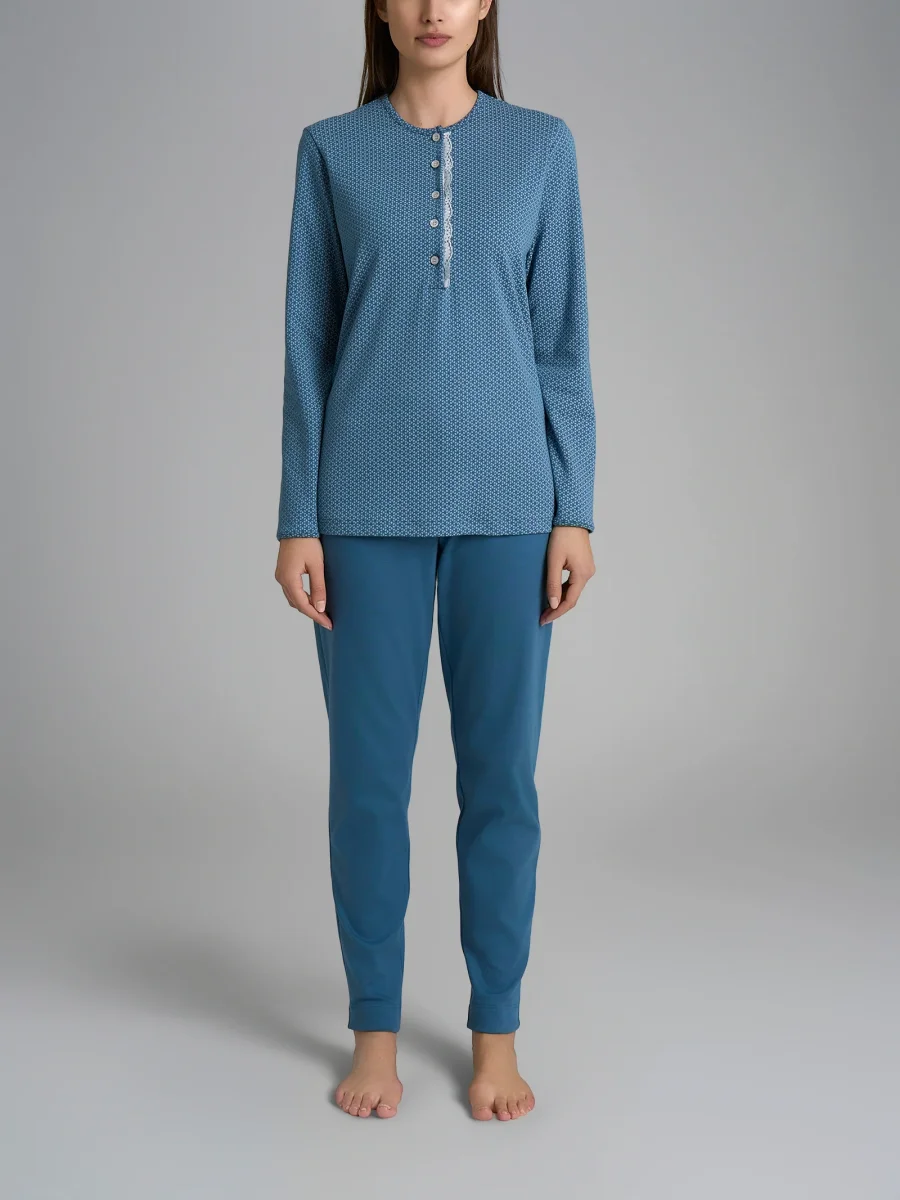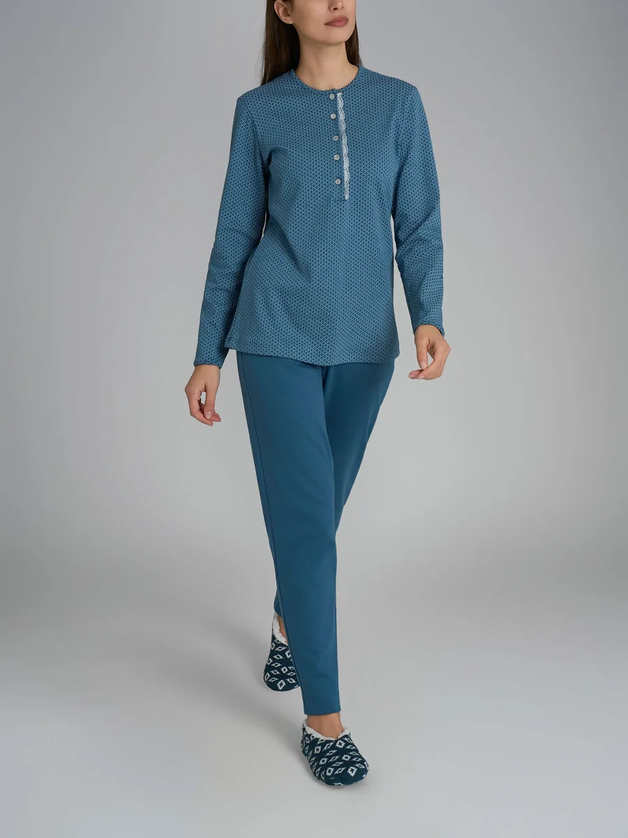 Pigiama a serafino con pizzo in Interlock di cotone 40-54 – Fant. Real Teal Micro Cravatier