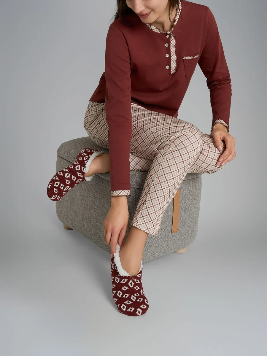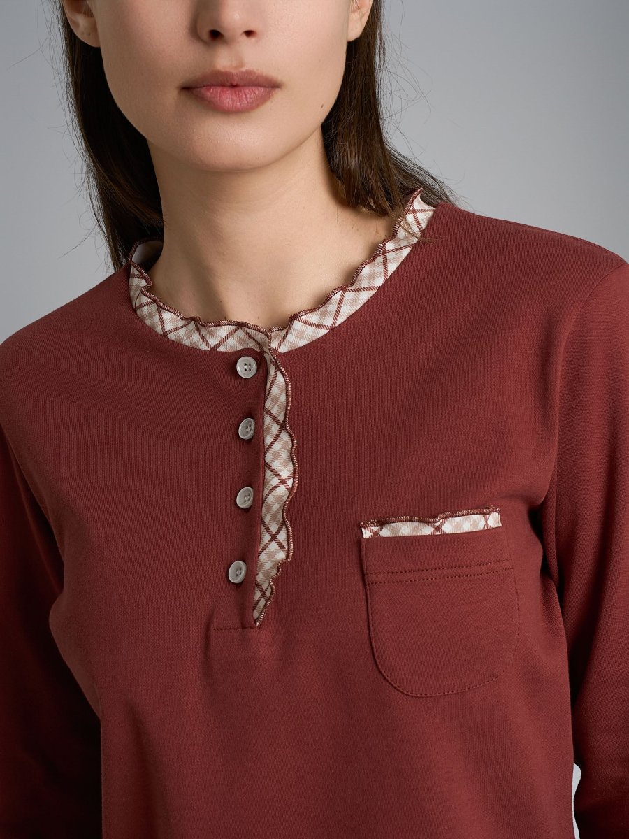 Pigiama a serafino con rouches in Interlock di cotone – Fant. Henna Small Tartan