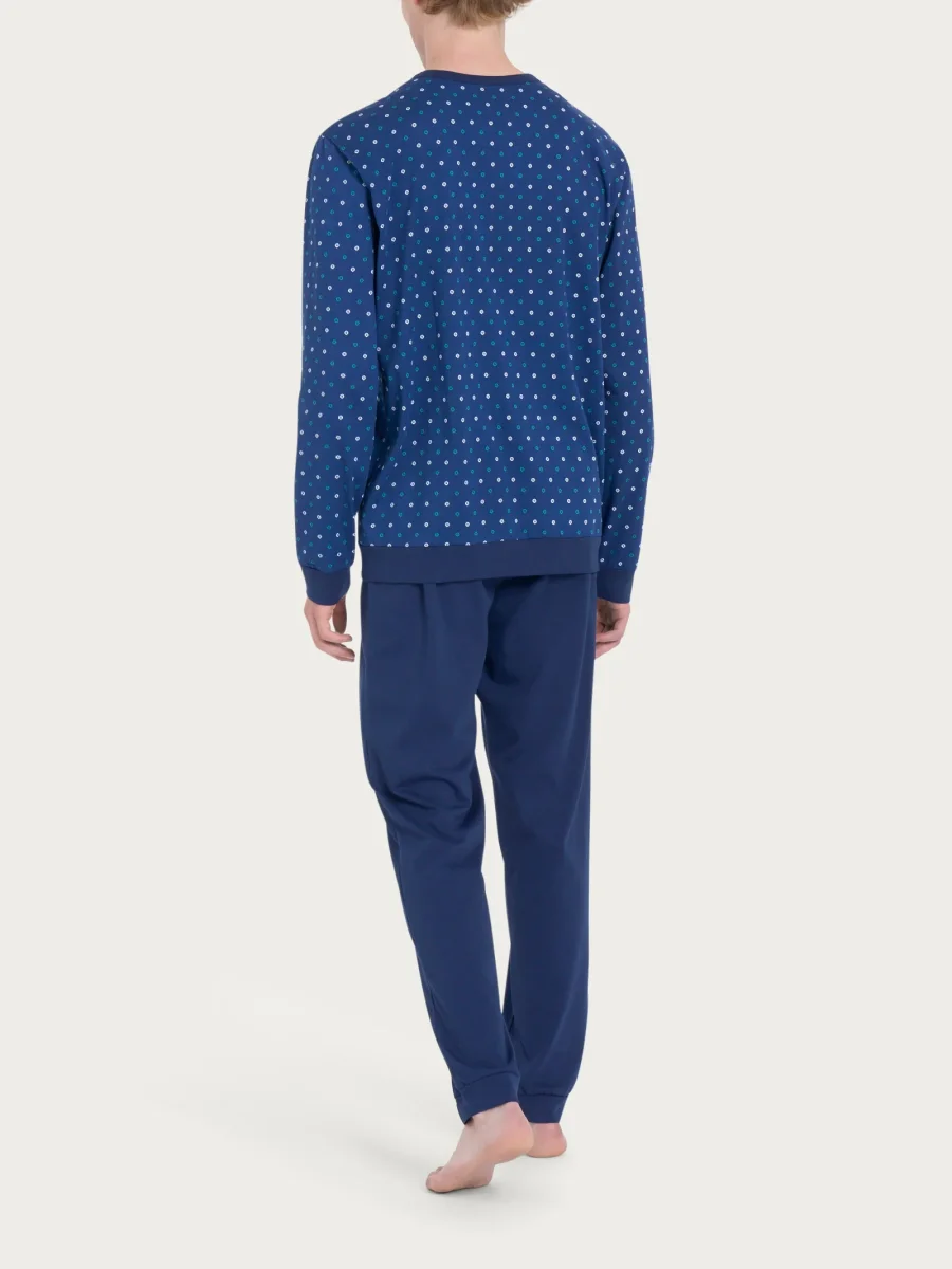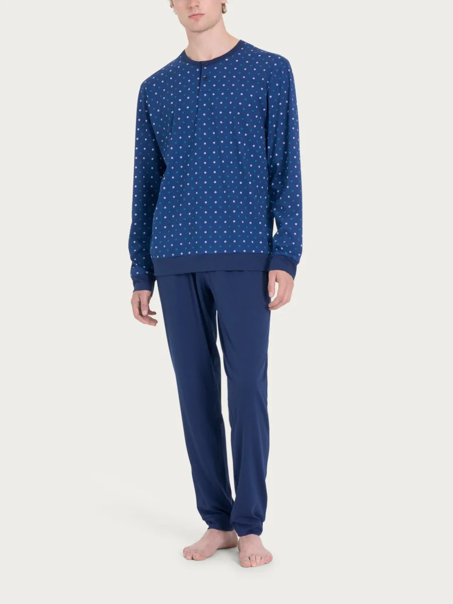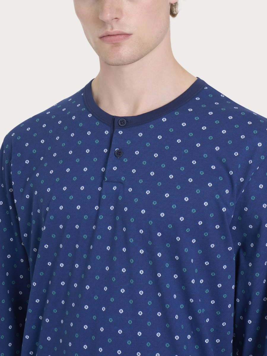 Pigiama lungo da uomo con collo a serafino e manica lunga, perfetto per affrontare la mezza stagione con un capo pratico.