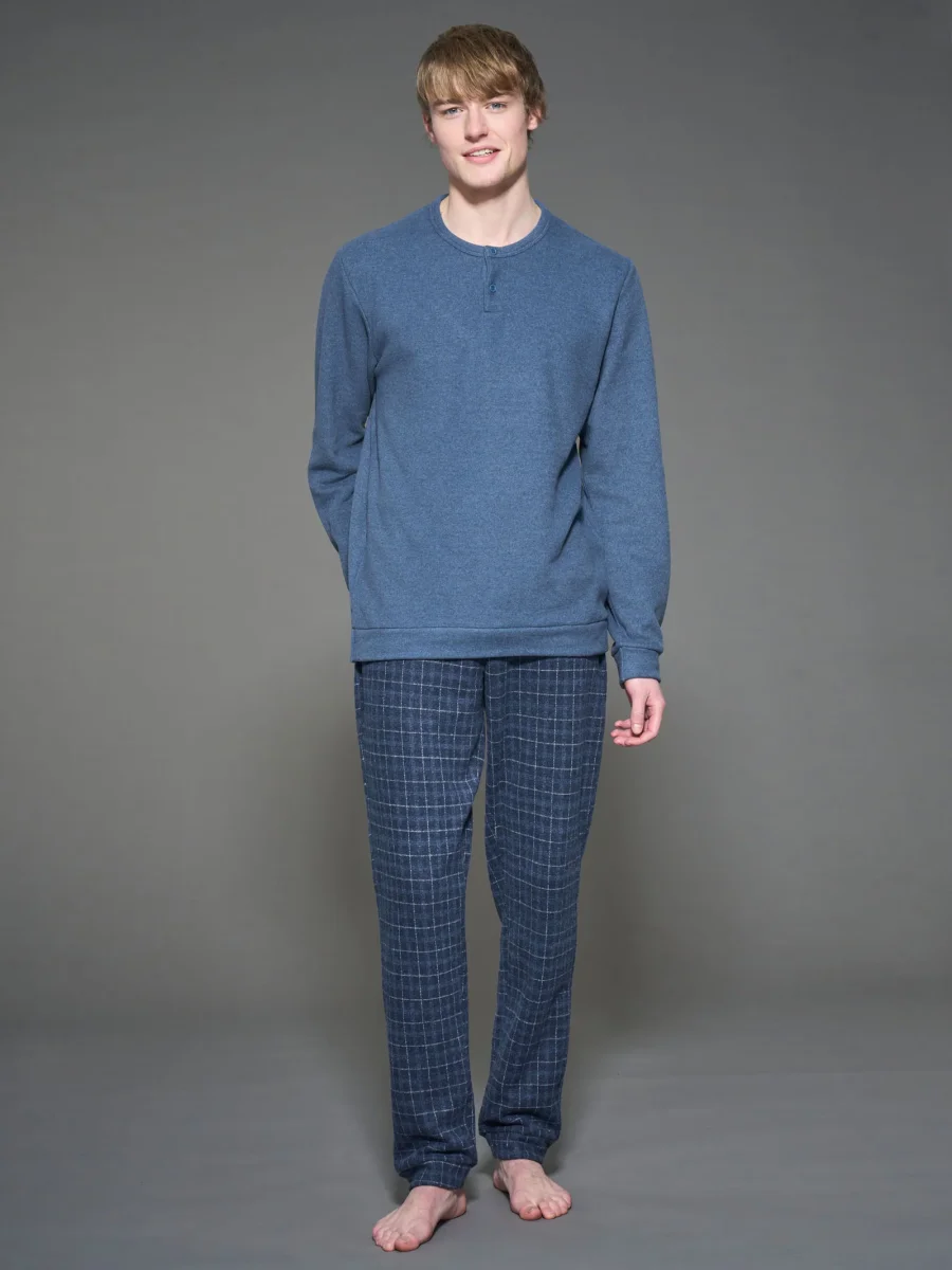 Il pigiama serafino invernale da uomo, realizzato in Cotton Eco Pile, è un capo che ti terrà al caldo e avvolto in morbidezza durante le fredde notti invernali.