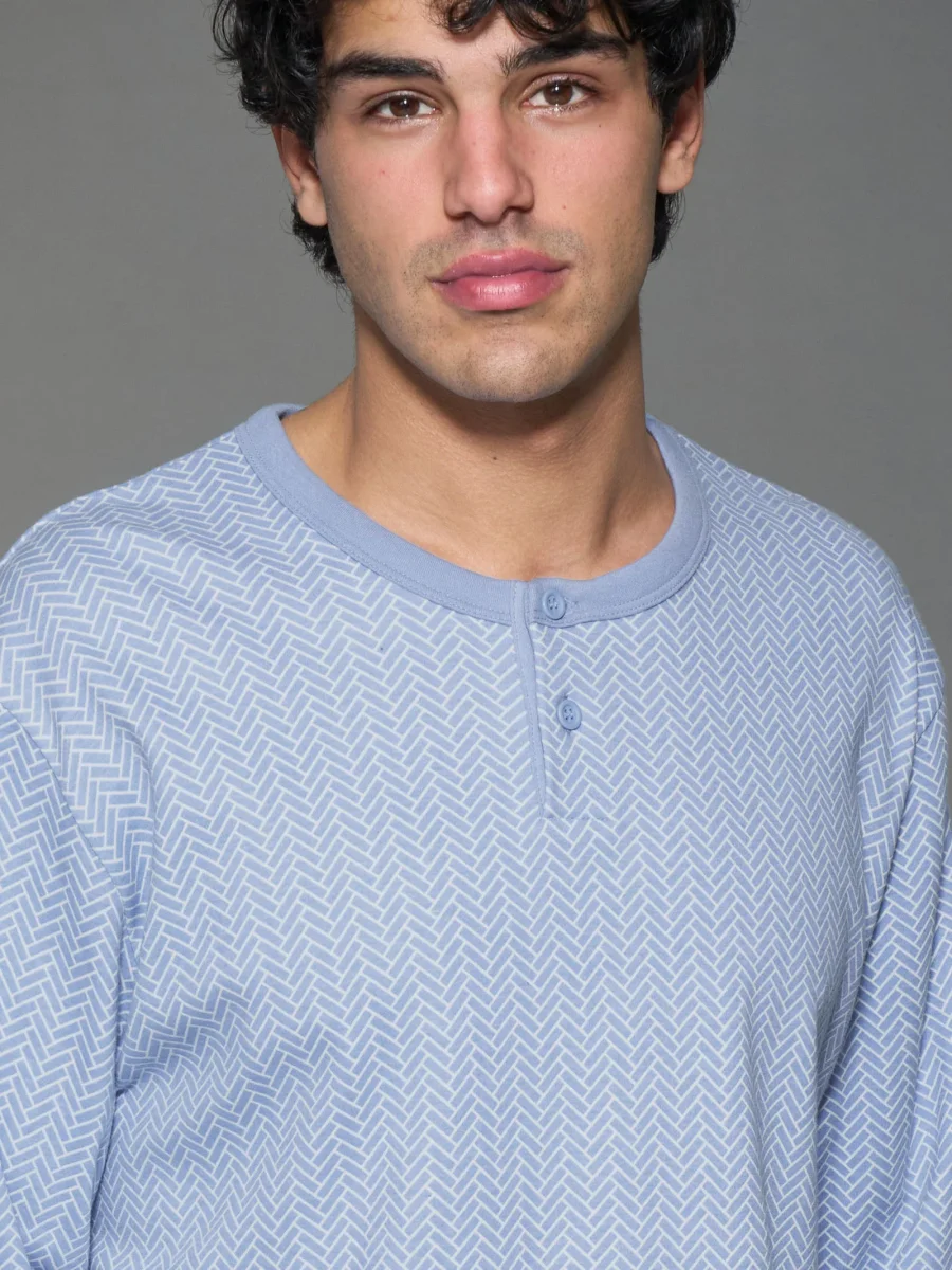 Pigiama a serafino in morbido interlock di caldo cotone con maniche lunghe.