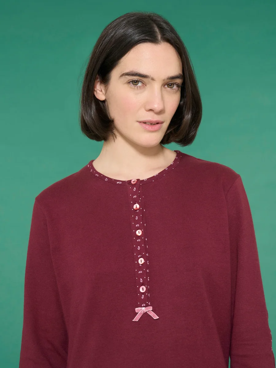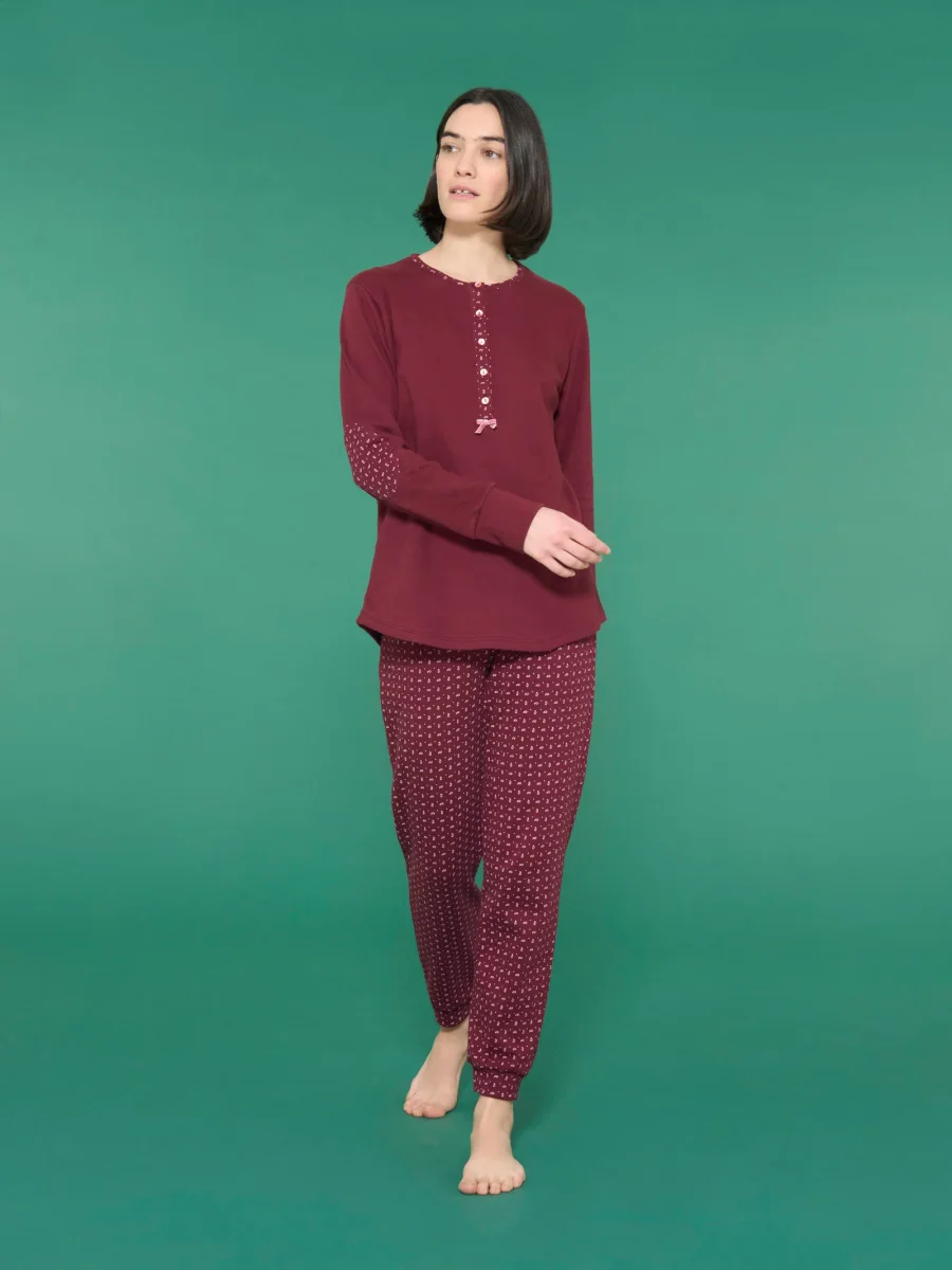 Pigiama a serafino lungo invernale da donna in interlock di caldo cotone.
