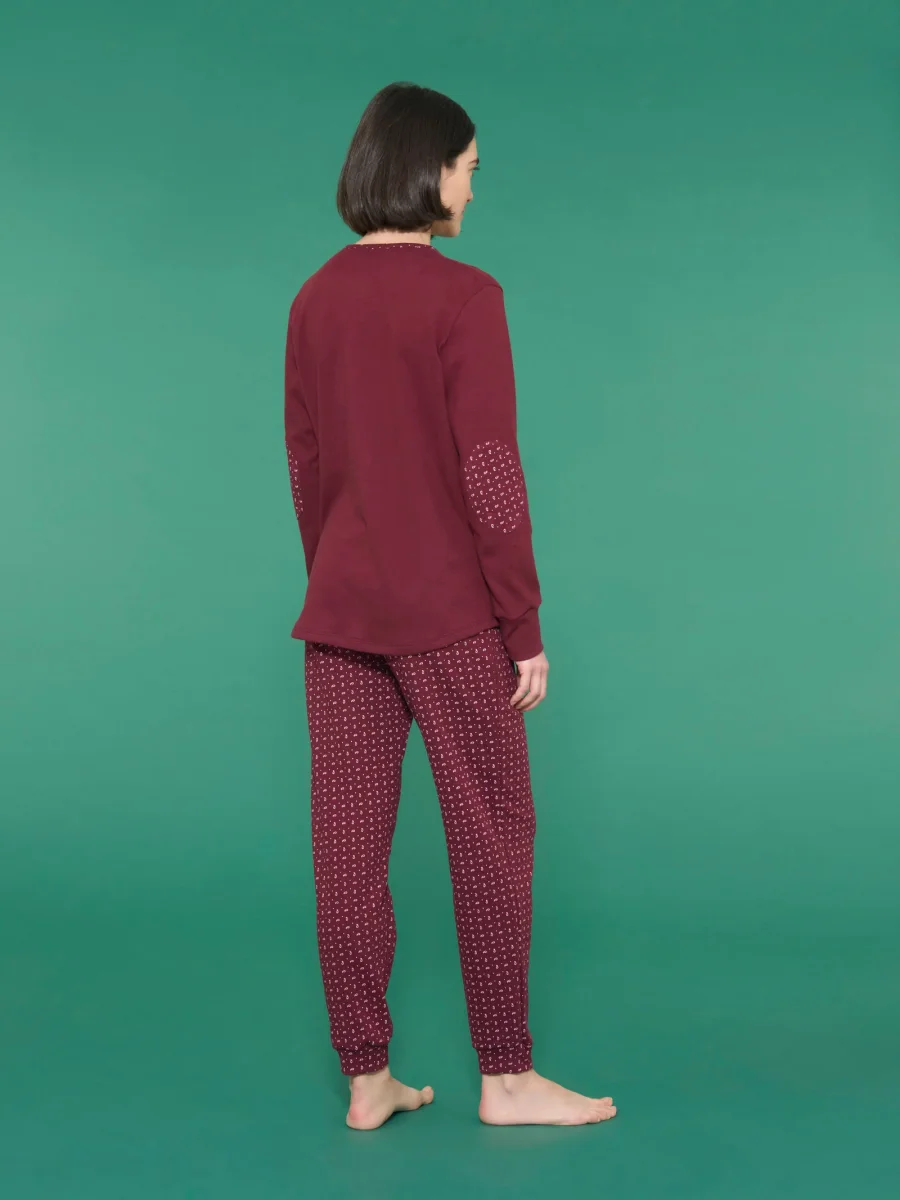 Il pantalone con vestibilità regular ha una fantasia cravattier all over e pratici polsini di 5cm abbinandosi perfettamente alla casacca ed avvolgendo delicatamente il corpo creando un look alla moda e senza tempo perfetto per le fredde notti invernali.