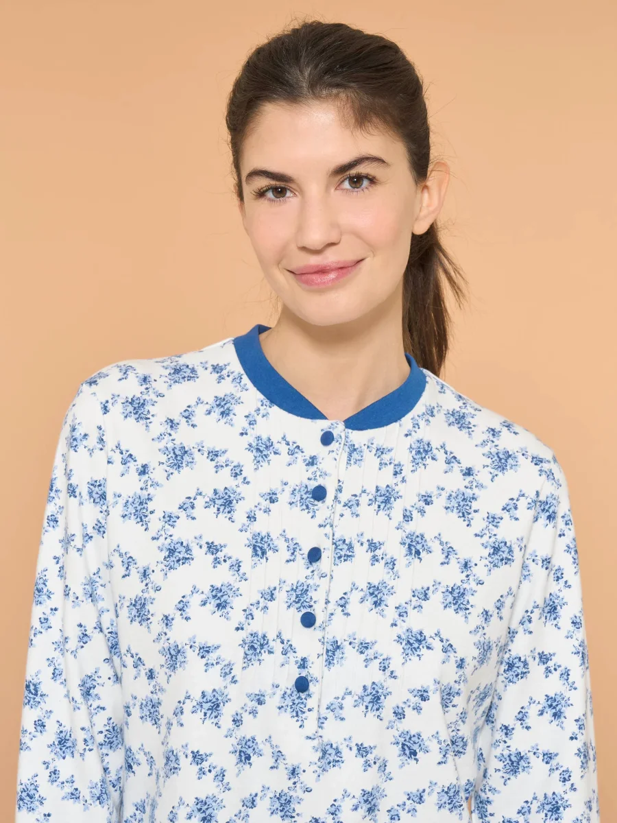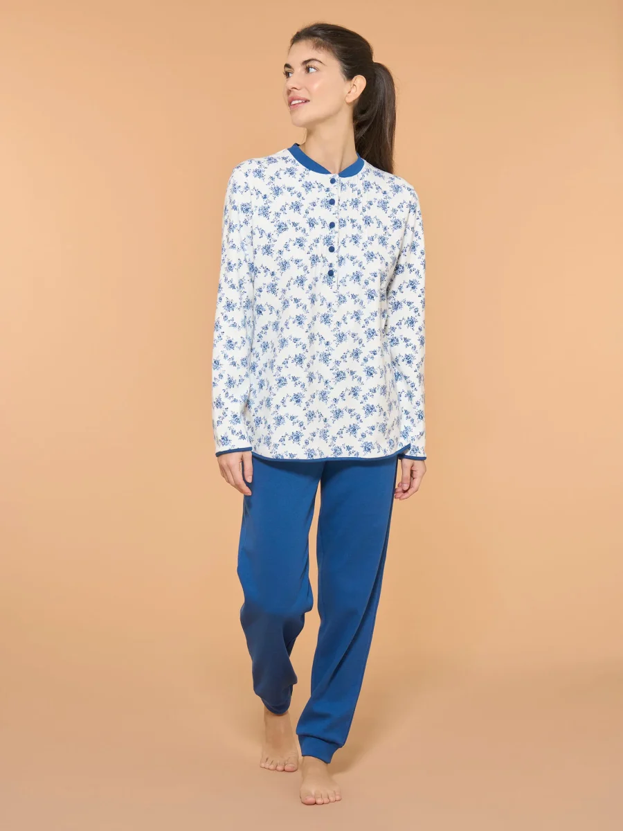 Esplora l’eleganza senza tempo del nostro pigiama a serafino in interlock di caldo cotone.