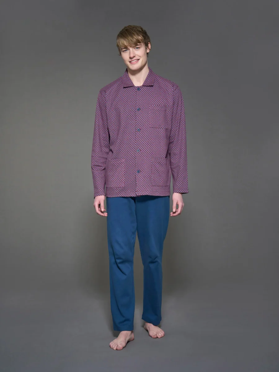Pigiama aperto con colletto in interlock di caldo cotone – Fant. Zinfandel