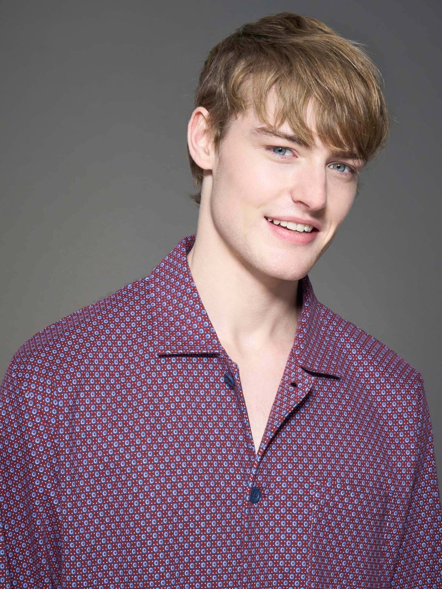 Questo capo è composto da una casacca aperta con colletto e con una raffinata fantasia geometrica a micro cerchi che dona uno stile classico e senza tempo e da un pantalone con vestibilità regular e a tinta unita che dona una base neutra perfettamente in tono.