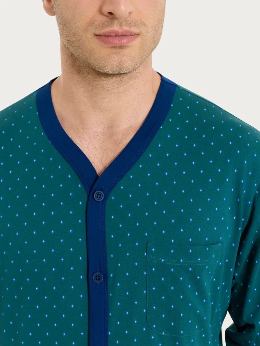 Pigiama aperto con micro rombi in Jersey di Cotone 44-56 – Fant. Bayberry
