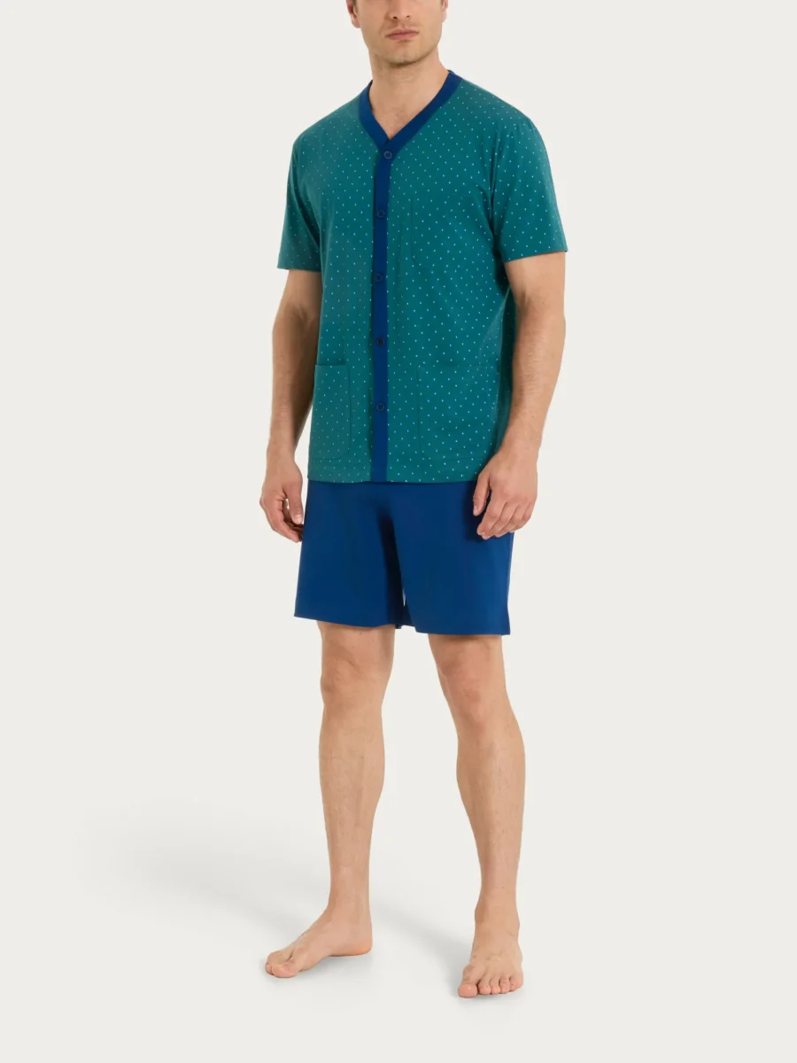 Pigiama aperto con manica corta, perfetto per affrontare le notti più calde con leggerezza.