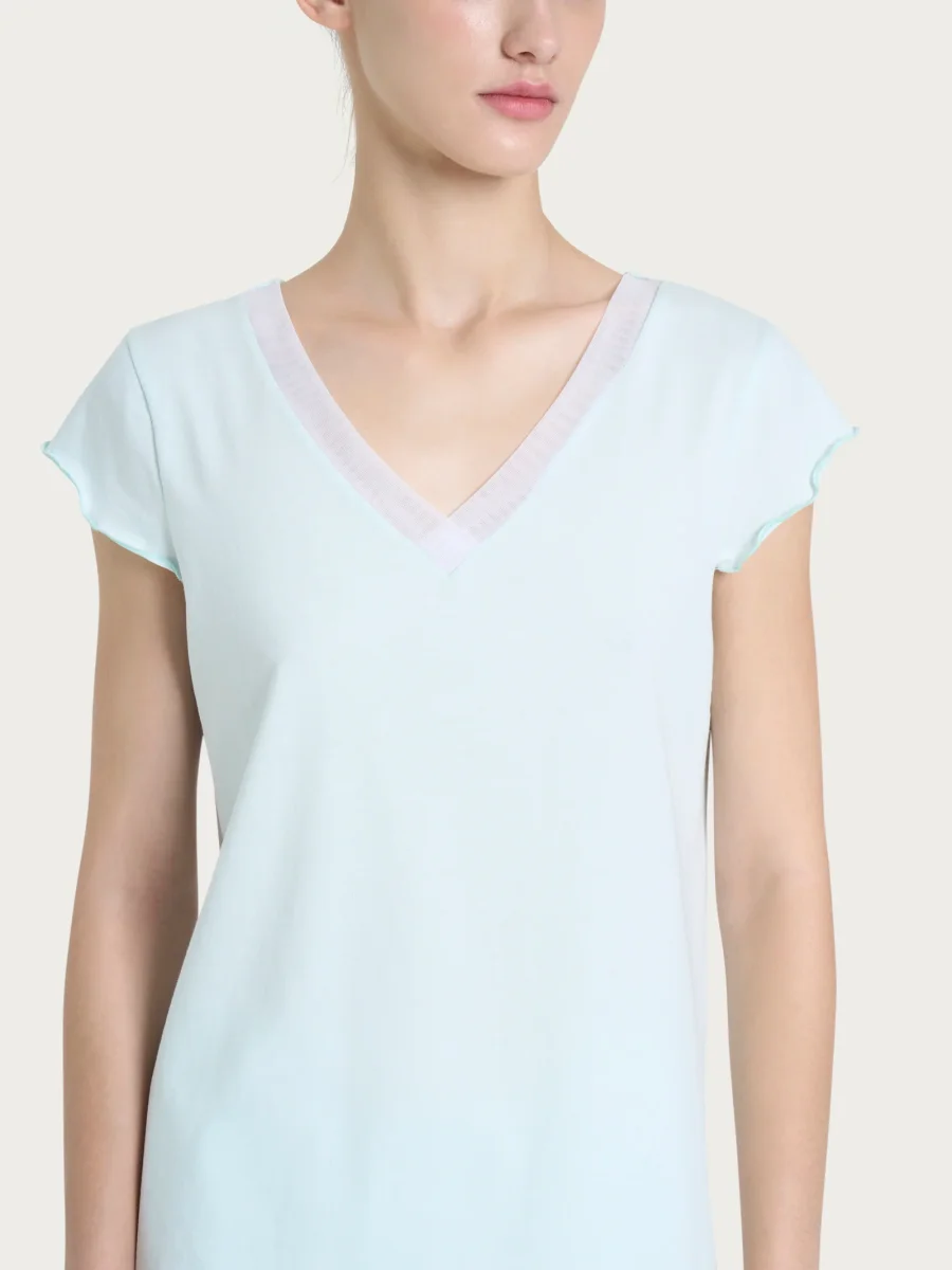 Disponibile in una selezione di delicate tonalità pastello, soddisfa ogni preferenza di stile, anche durante le ore notturne. Perfetto per le calde serate estive, combina eleganza e semplicità, avvolgendoti in una piacevole sensazione di freschezza e benessere. Ideale da abbinare alla vestaglia coordinata.