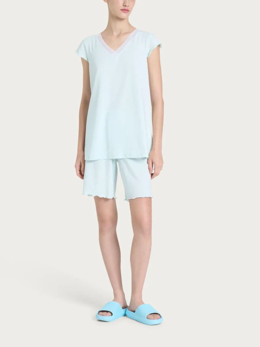 Vivi l’esperienza di un comfort perfetto per affrontare la notte con il nostro pigiama estivo con scollo a V da donna Ragno.