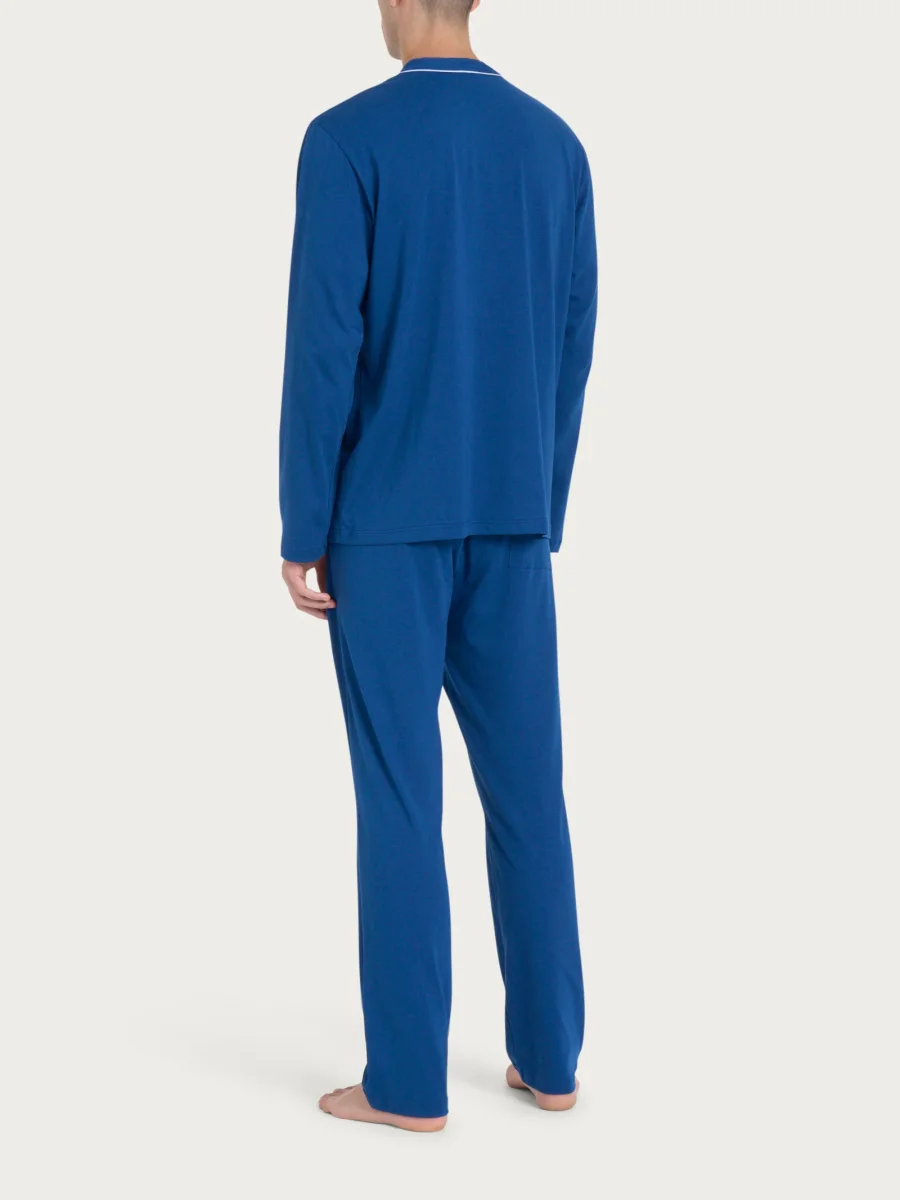 Pigiama lungo da uomo aperto con manica lunga, perfetto per affrontare la mezza stagione con un capo pratico.