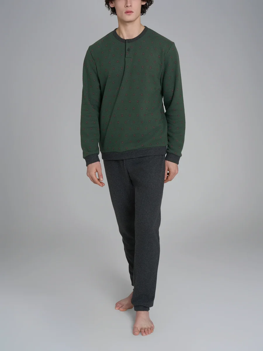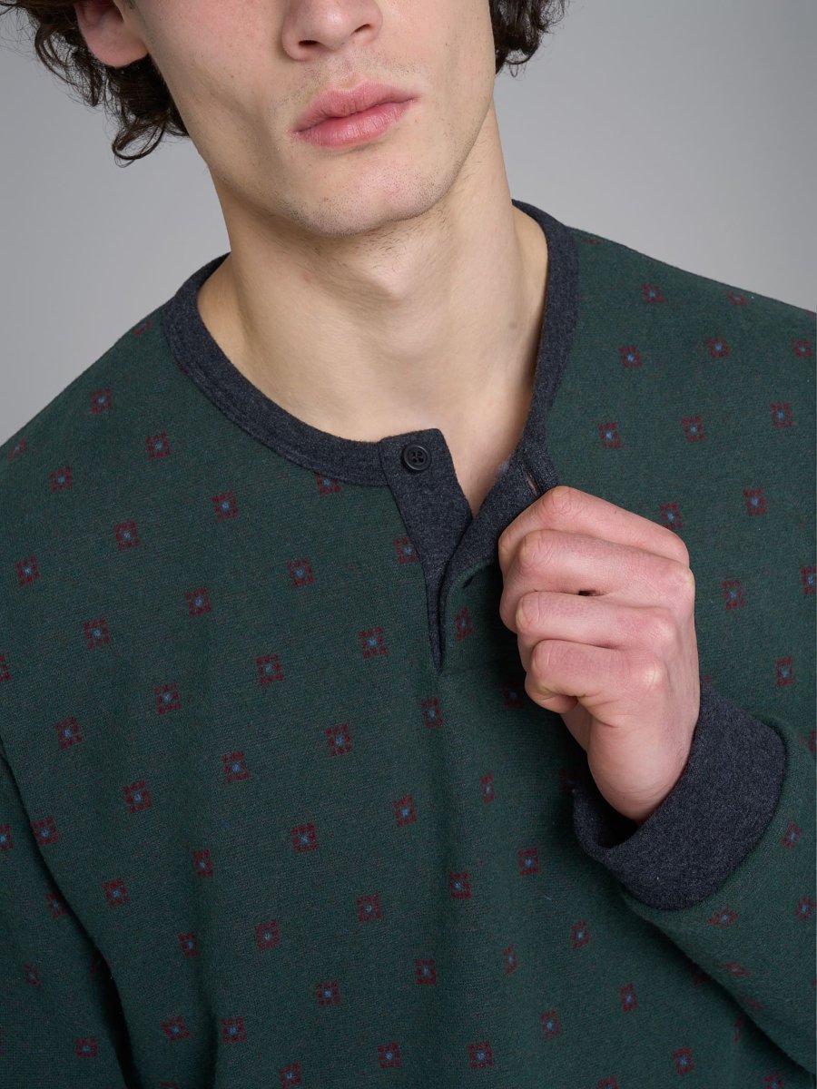 Pigiama serafino con fantasia geometrica in Cotton Eco Pile – Fant.Smeraldo