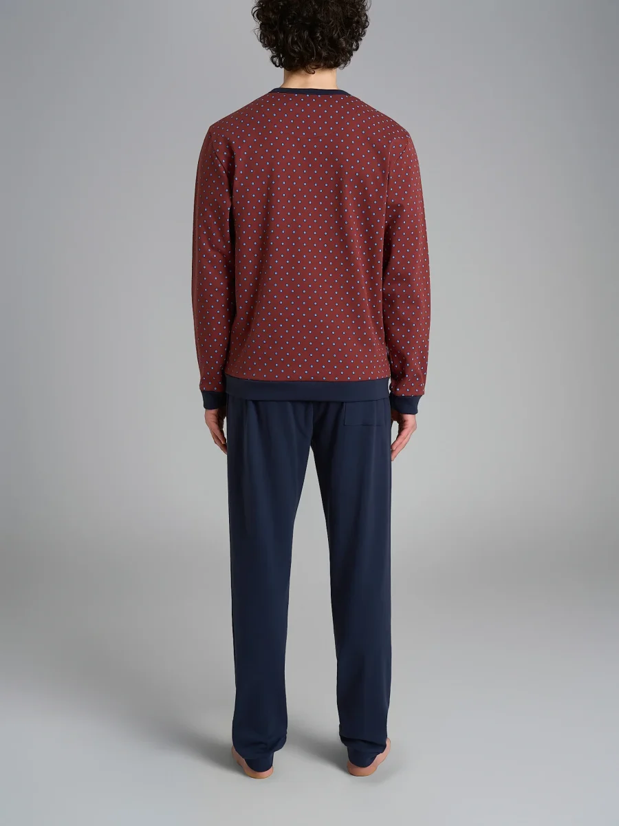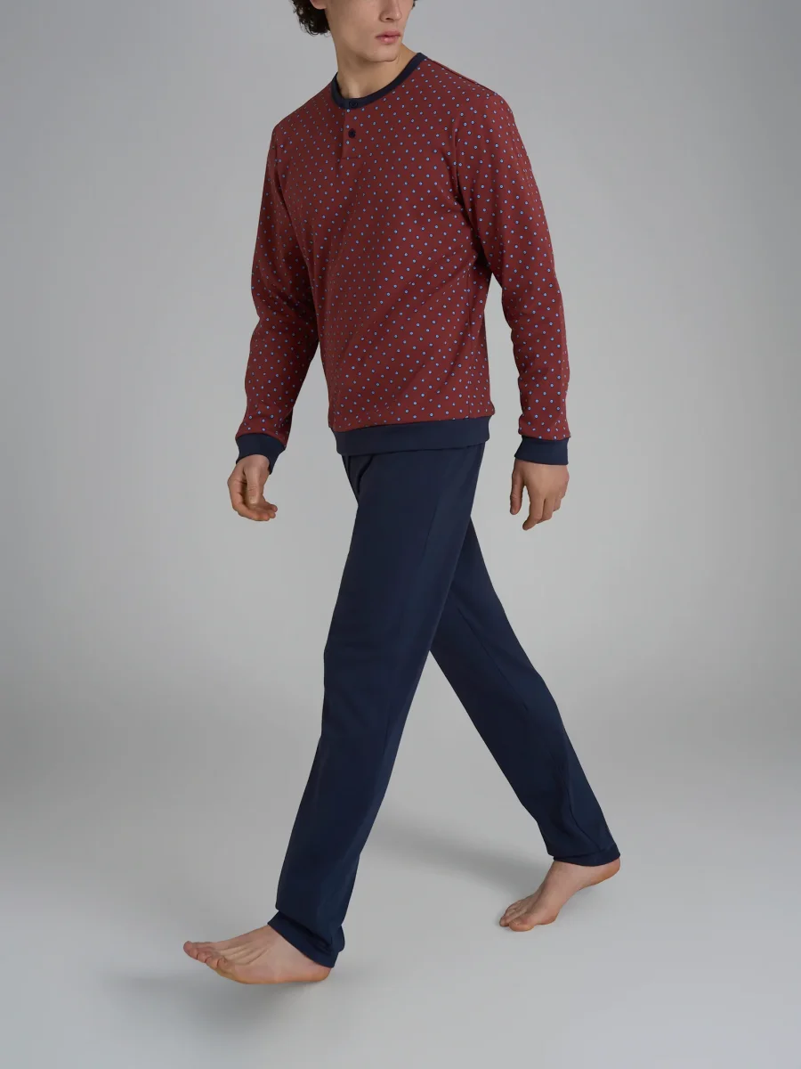 Pigiama a serafino in morbido interlock di caldo cotone con maniche lunghe.