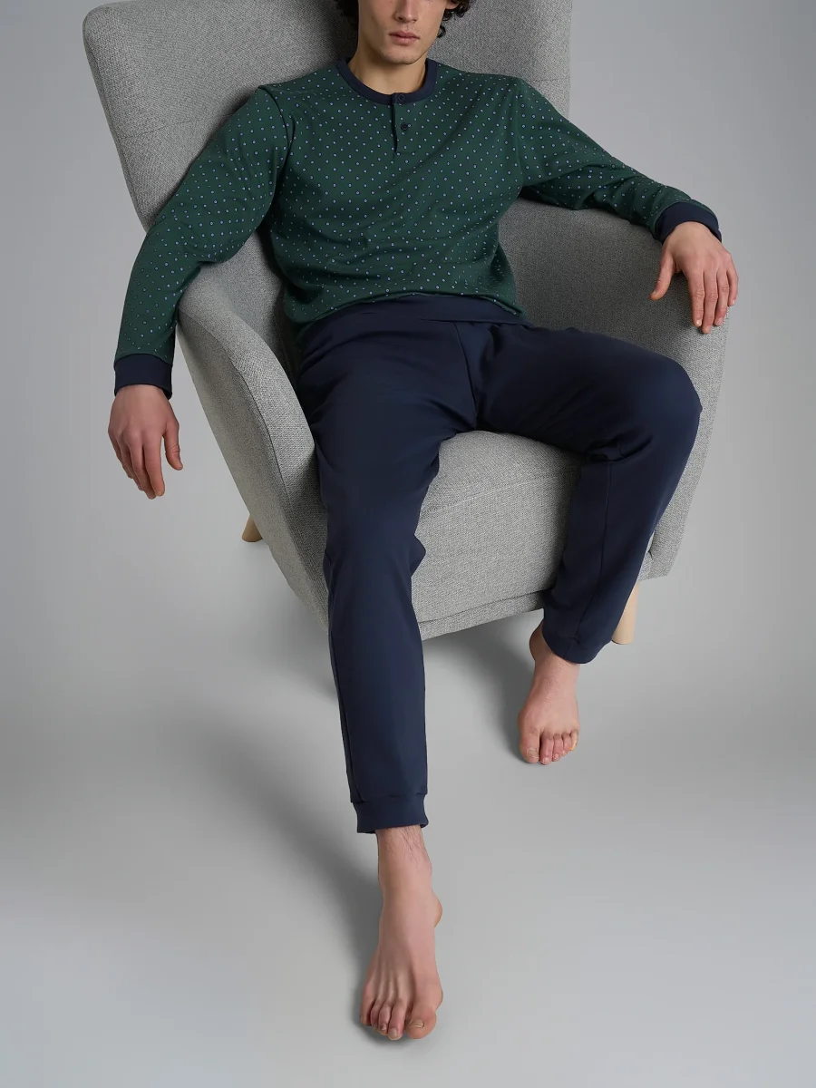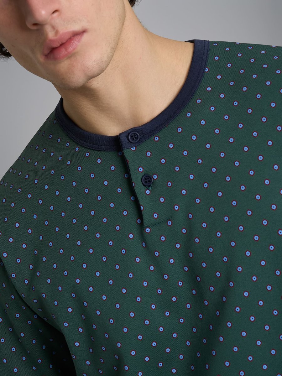 Pigiama serafino con fantasia geometrica in interlock di cotone 44-56 – Fant. Trekking Green Cravatier