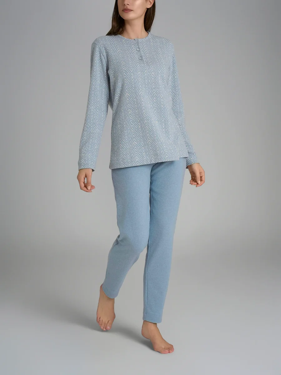 Pigiama serafino con fantasia in Cotton Eco Pile – Fant.Nebbia