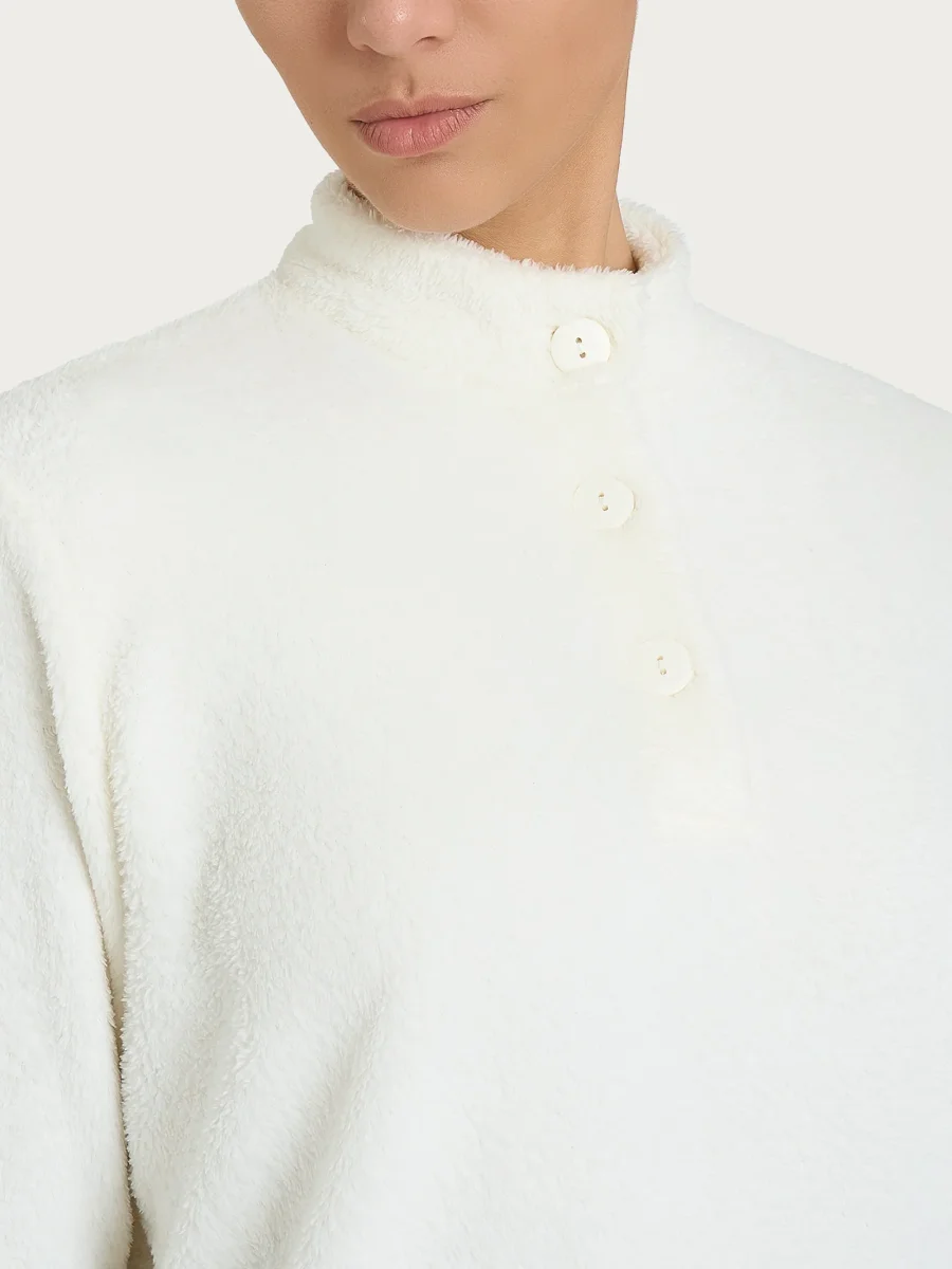Il tessuto Polar Fleece oltre a donare una sensazione morbida al tatto, trattiene il calore corporeo, rendendo il pigiama ideale per le fredde notti invernali o per chi cerca comfort extra durante il riposo.