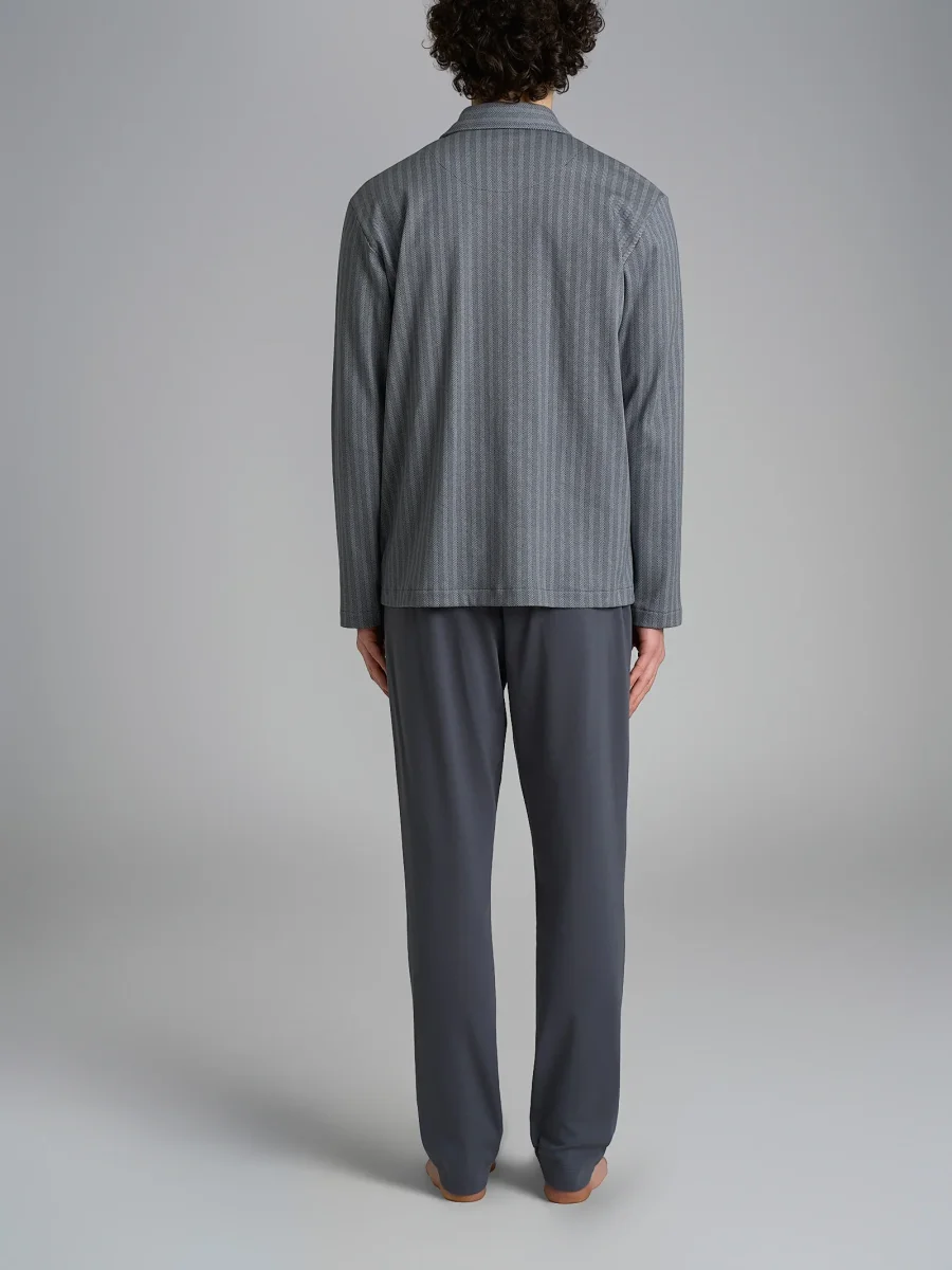 Pigiama lungo da uomo aperto con manica lunga, perfetto per affrontare la stagione più fredda dell’anno.