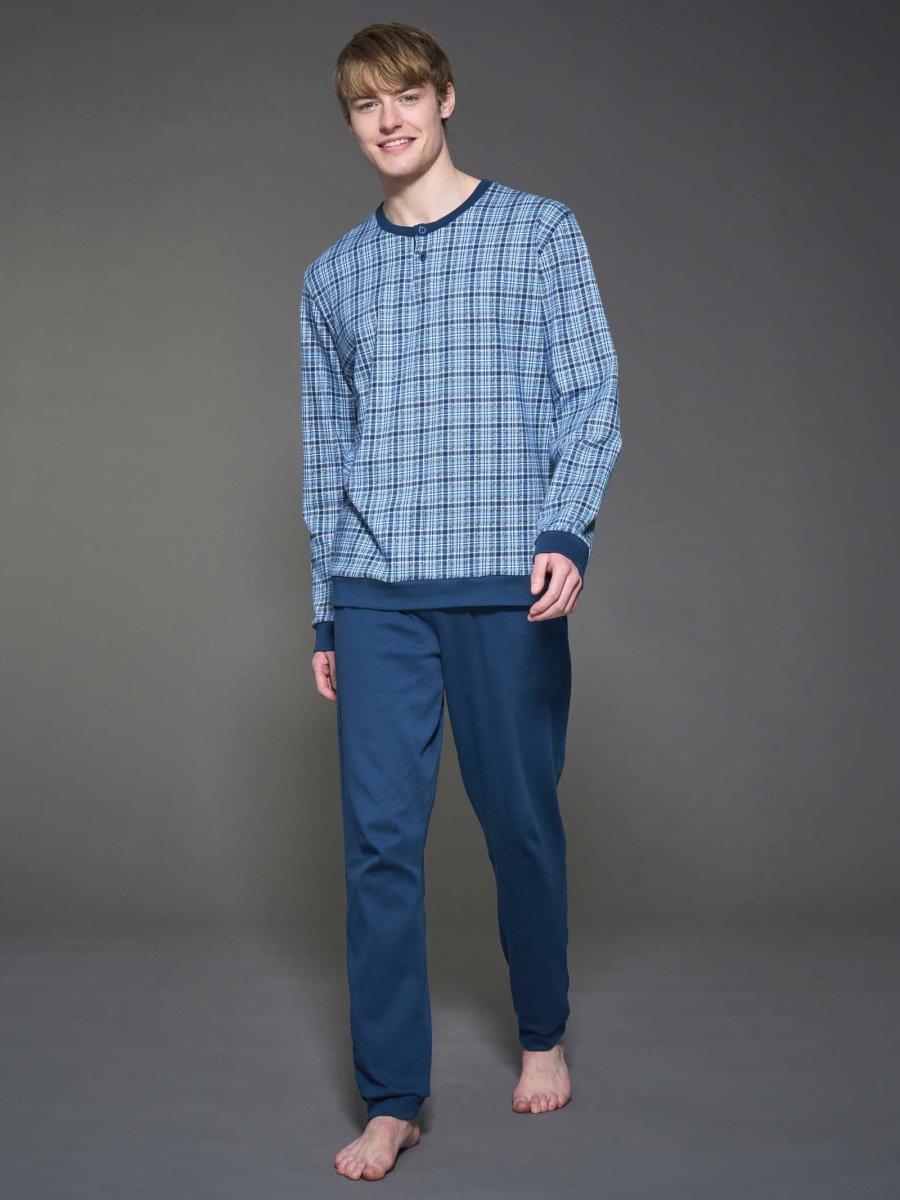 Pigiama a serafino in morbido interlock di caldo cotone con maniche lunghe.