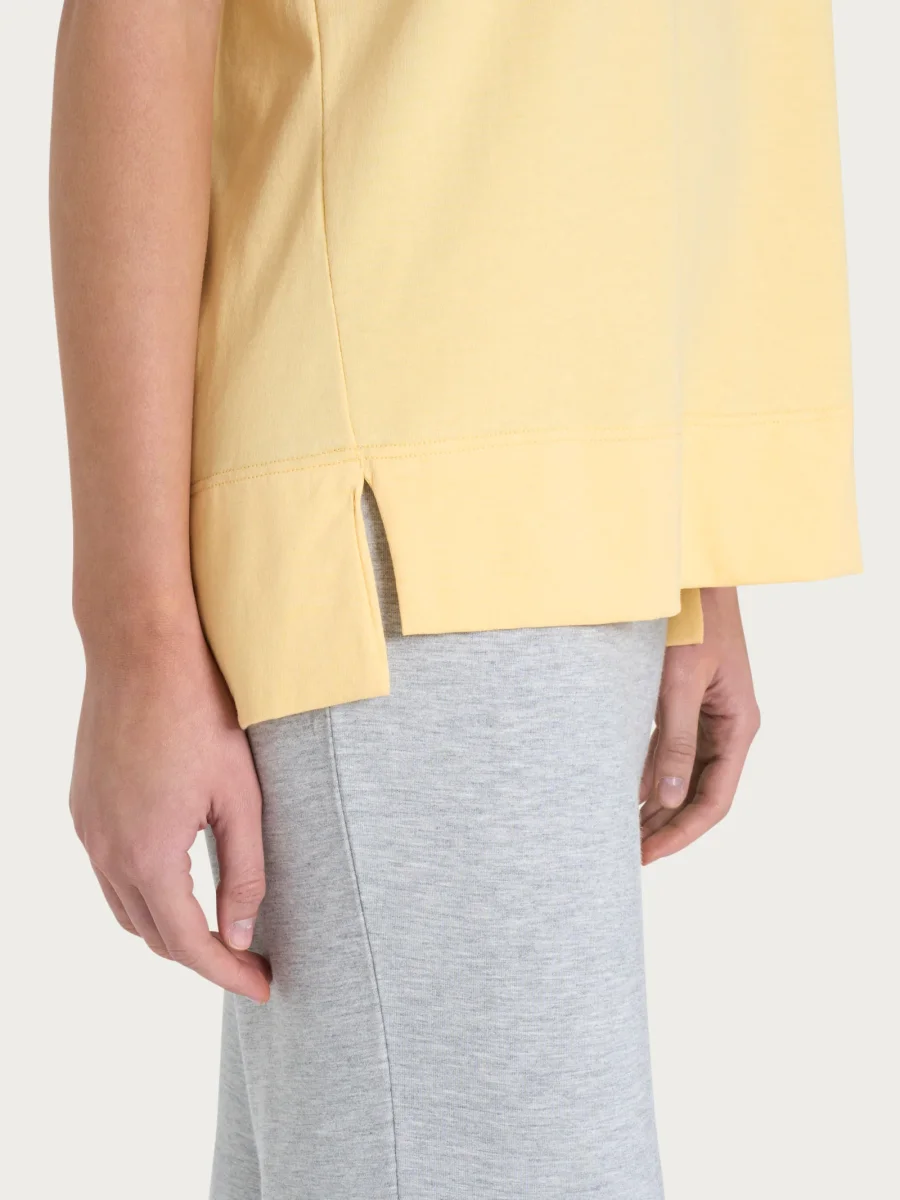 Il fondo asimmetrico dona movimento e leggerezza al capo, mentre gli spacchetti laterali aggiungono un dettaglio funzionale, favorendo una vestibilità comoda e dinamica.