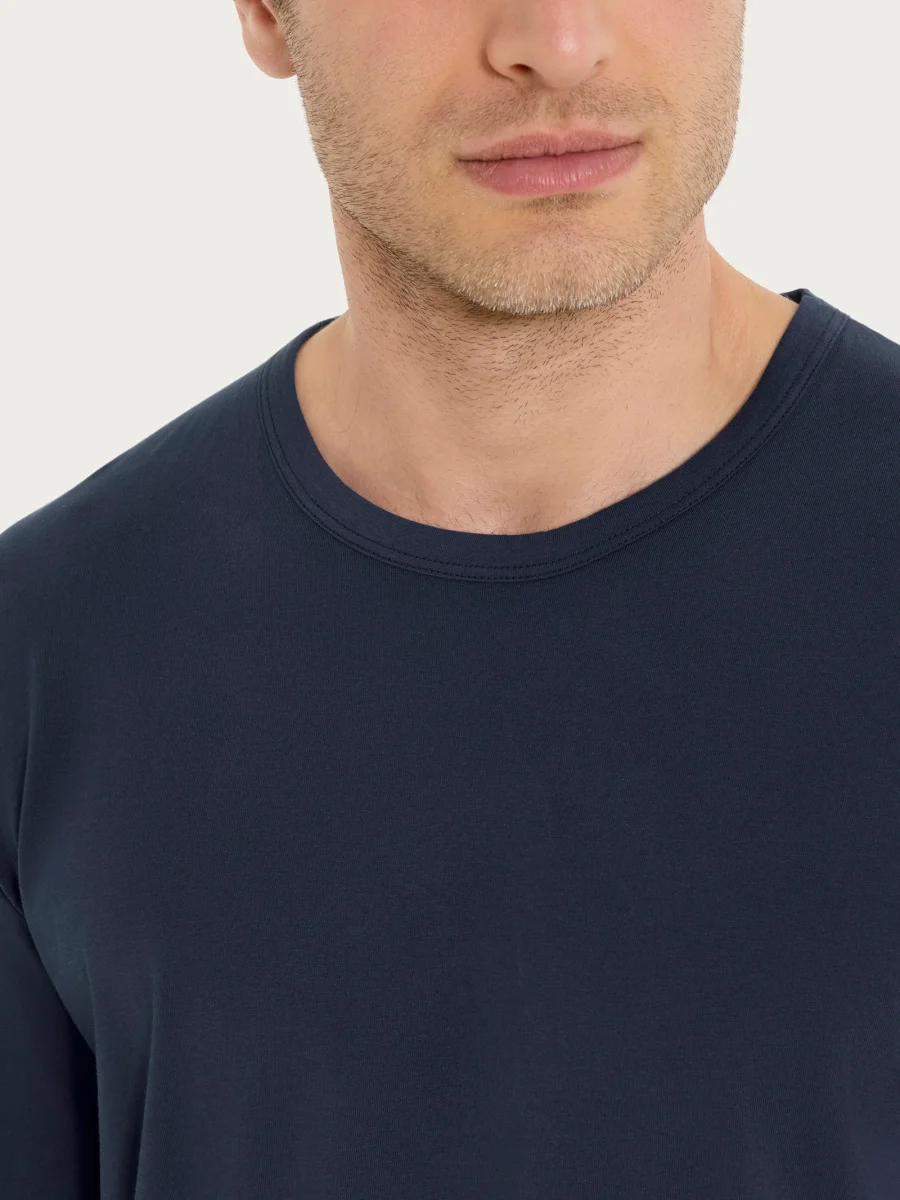 La casacca tinta unita crea una base sobria ed elegante, valorizzata da un design essenziale che dona al look un’eleganza naturale e senza tempo, assicurando comfort e benessere durante tutta la notte.