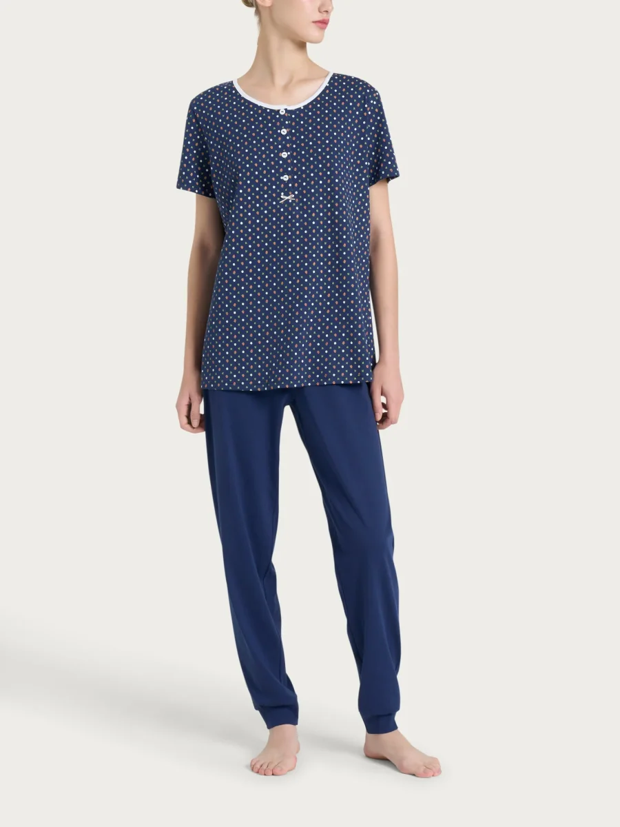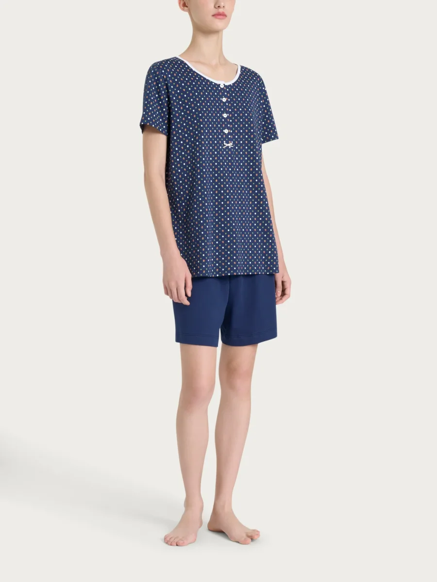 Vivi il perfetto mix di comfort e stile con il nostro pigiama trittico estivo da donna in jersey di cotone.