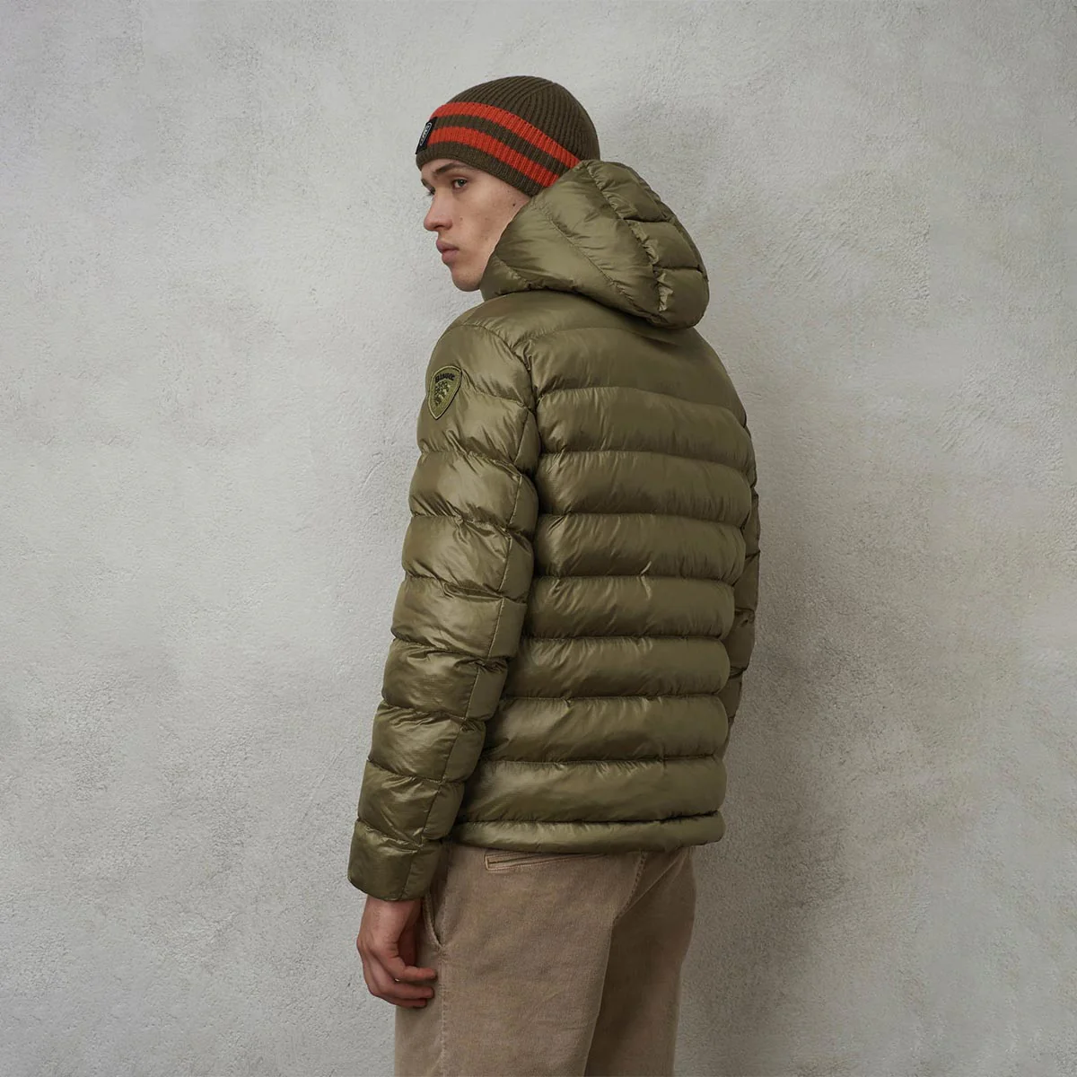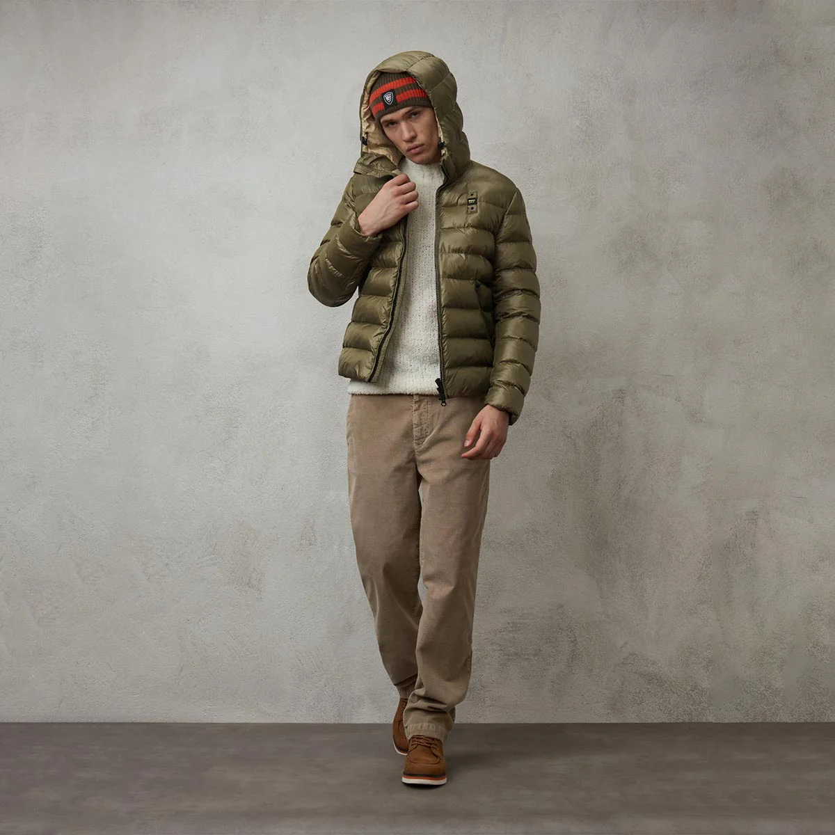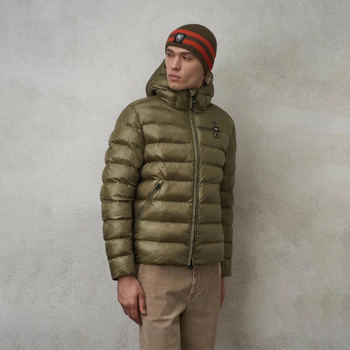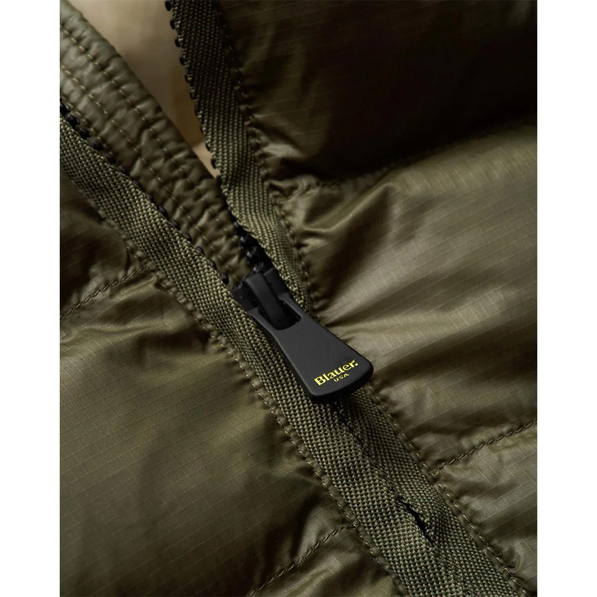 Caratteristico passante Blauer in tono cucito sul petto a sinistra e patch in tono sulla manica sinistra.