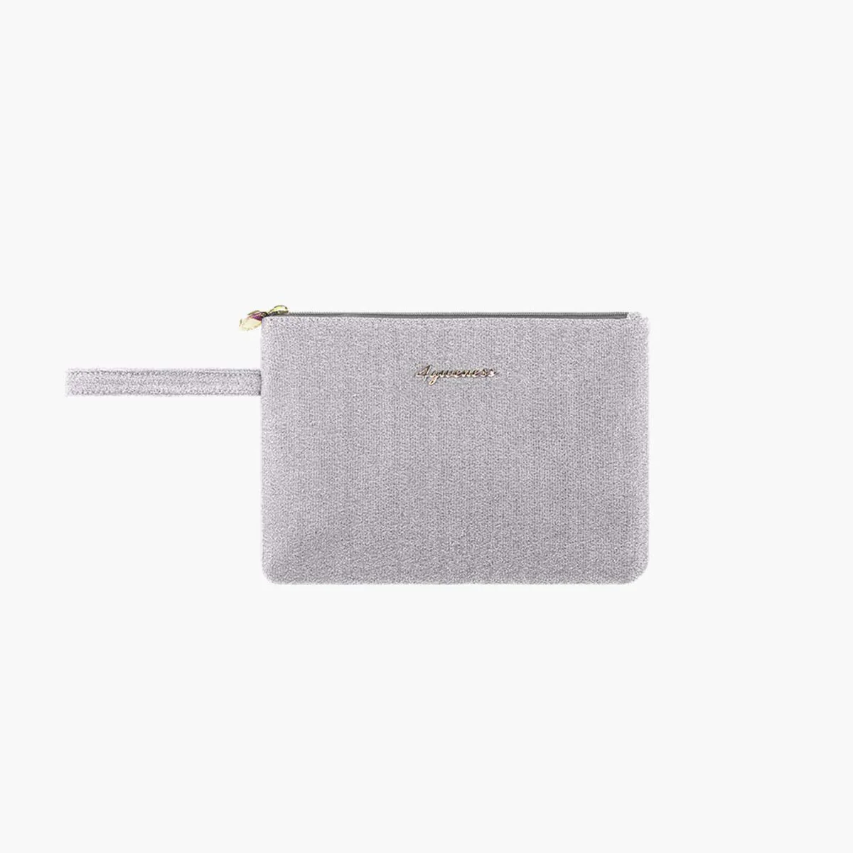 Questa pochette dispone di manico fisso ed un unico scomparto foderato e chiuso con zip.
