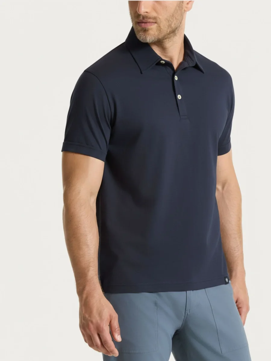 Il collo con chiusura a tre bottoni definisce lo stile con un tocco classico e ordinato, mentre la manica corta rende il modello ideale per la stagione calda e per un utilizzo versatile.