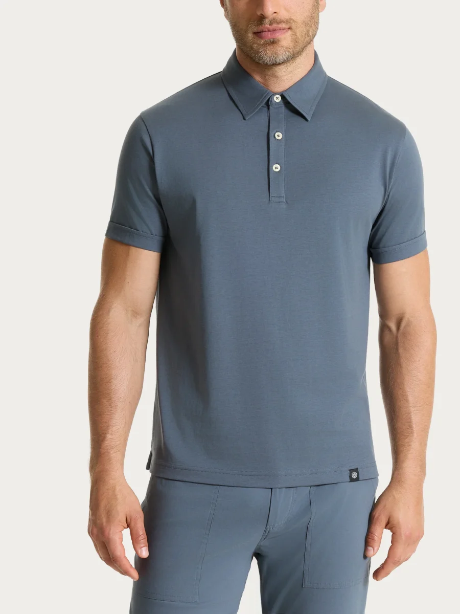 Il collo con chiusura a tre bottoni definisce lo stile con un tocco classico e ordinato, mentre la manica corta rende il modello ideale per la stagione calda e per un utilizzo versatile.