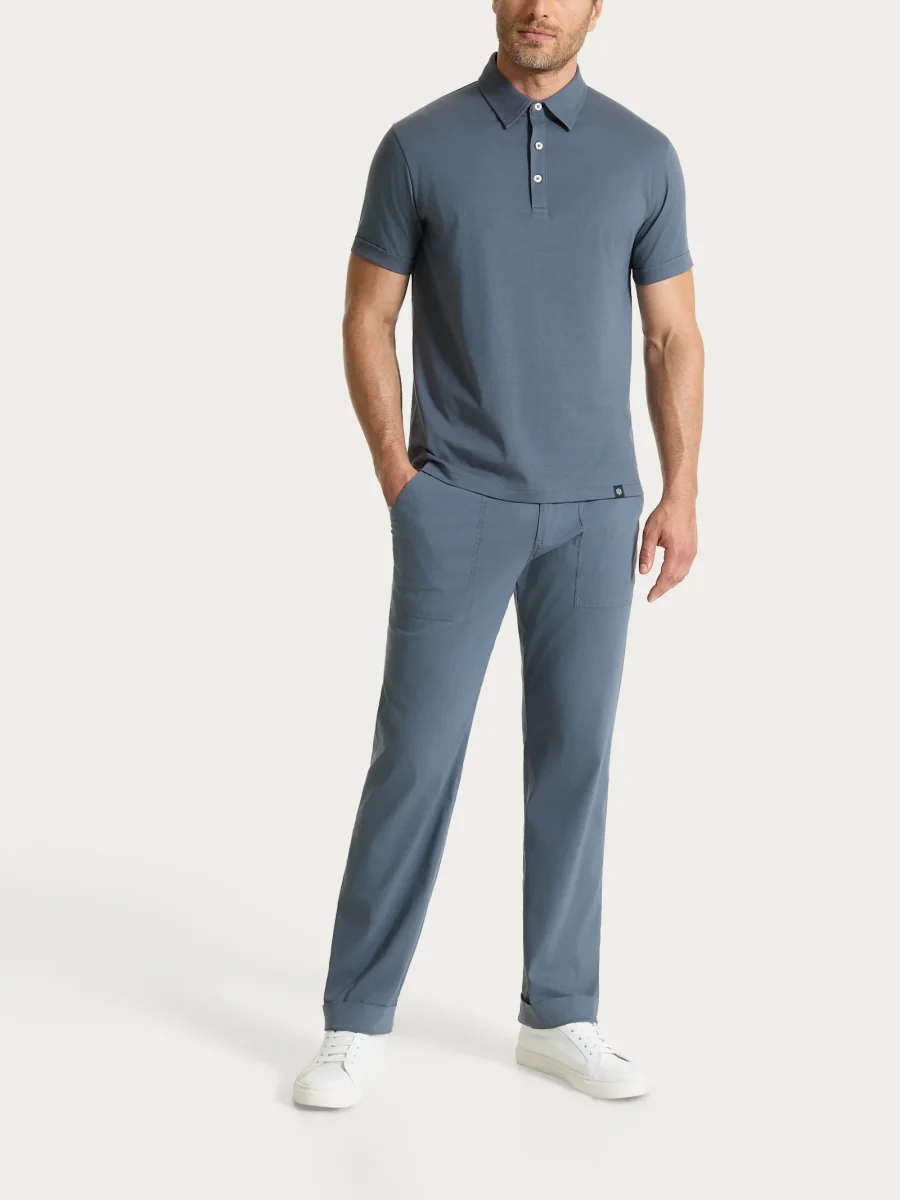 Il tessuto, sottoposto a doppia mercerizzazione, presenta una superficie liscia e luminosa, una mano compatta e una maggiore resistenza nel tempo, mantenendo al contempo la naturale traspirabilità del cotone. Una qualità che dona al capo un aspetto curato e una sensazione piacevole sulla pelle.