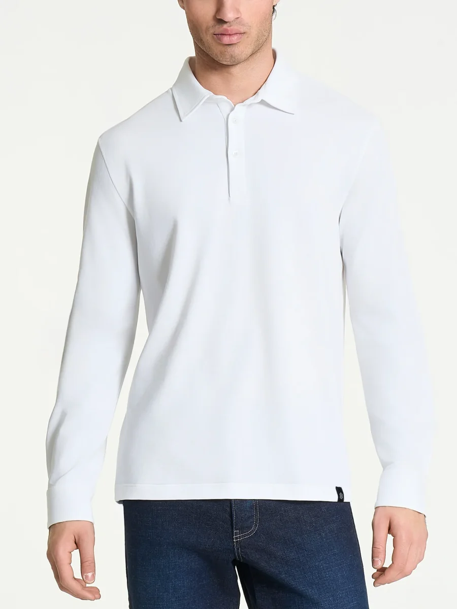Polo con manica lunga in Eco Cotton Piquet Stretch – Bianco