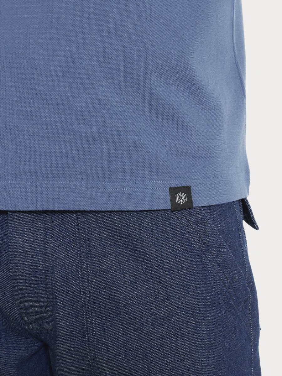Il collo a tre bottoni definisce il design con un taglio classico e versatile, mentre i piccoli spacchetti laterali migliorano la vestibilità e la libertà di movimento, aggiungendo un dettaglio funzionale e curato.