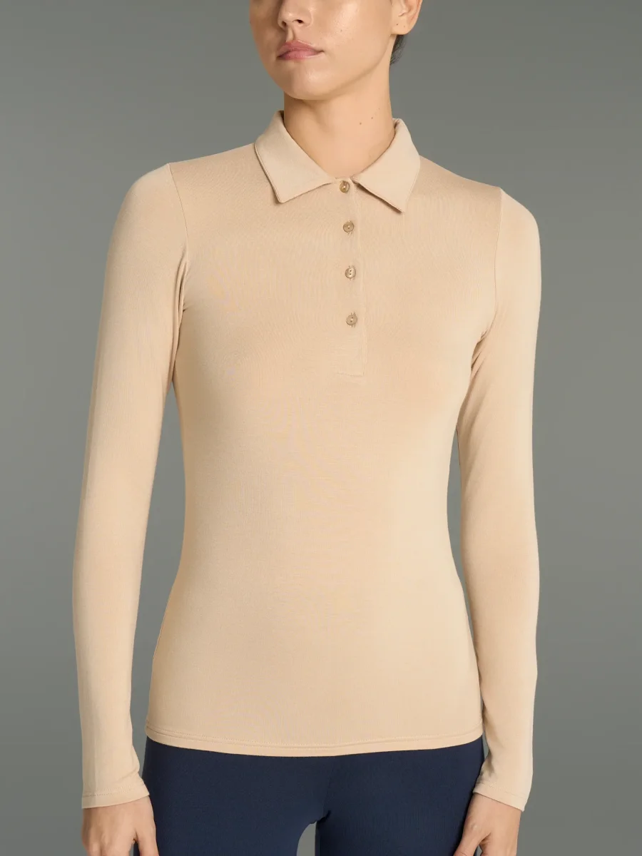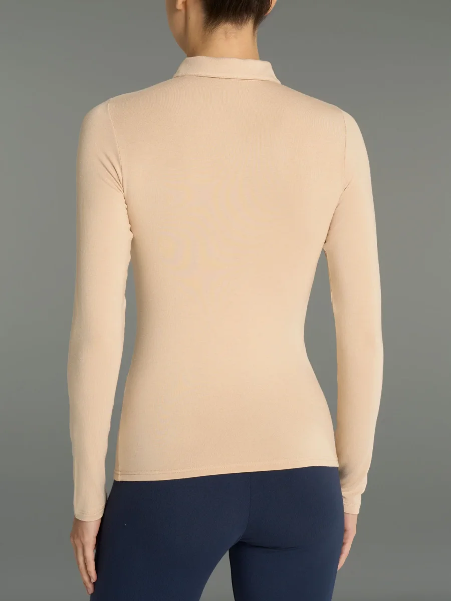 Polo a manica lunga da donna in ecoviscosa, una delicata viscosa elasticizzata calda e morbida.