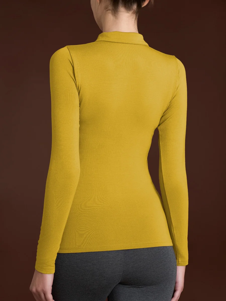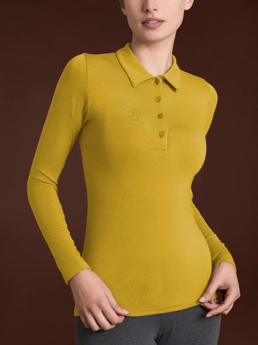 Polo a manica lunga da donna in ecoviscosa, una delicata viscosa elasticizzata calda e morbida.