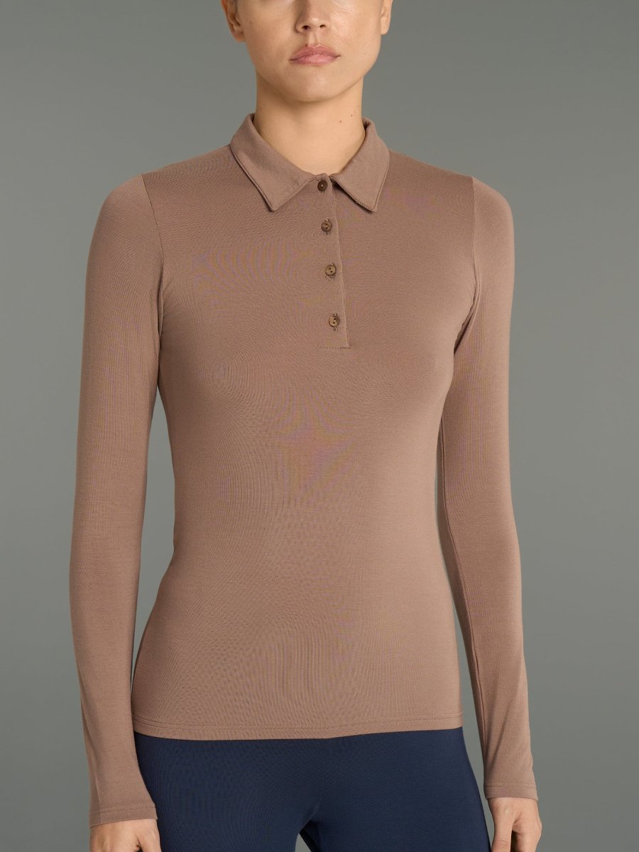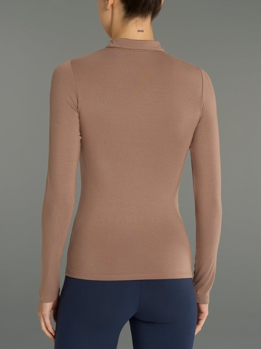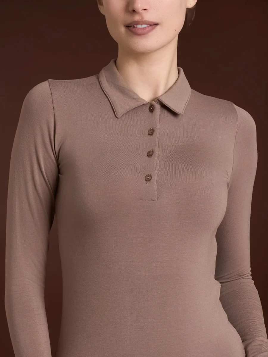 Polo a manica lunga da donna in ecoviscosa, una delicata viscosa elasticizzata calda e morbida.