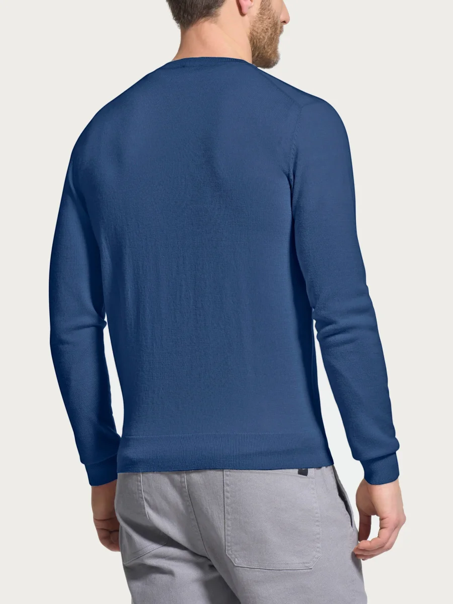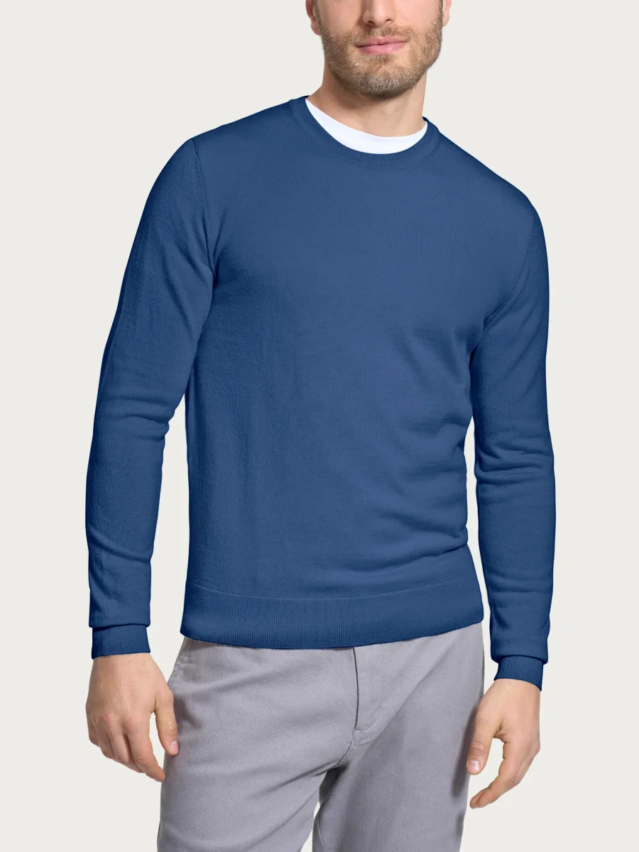 Maglia girocollo da uomo in pura lana merino, tessuto in finezza 12, estremamente morbido e caldo.